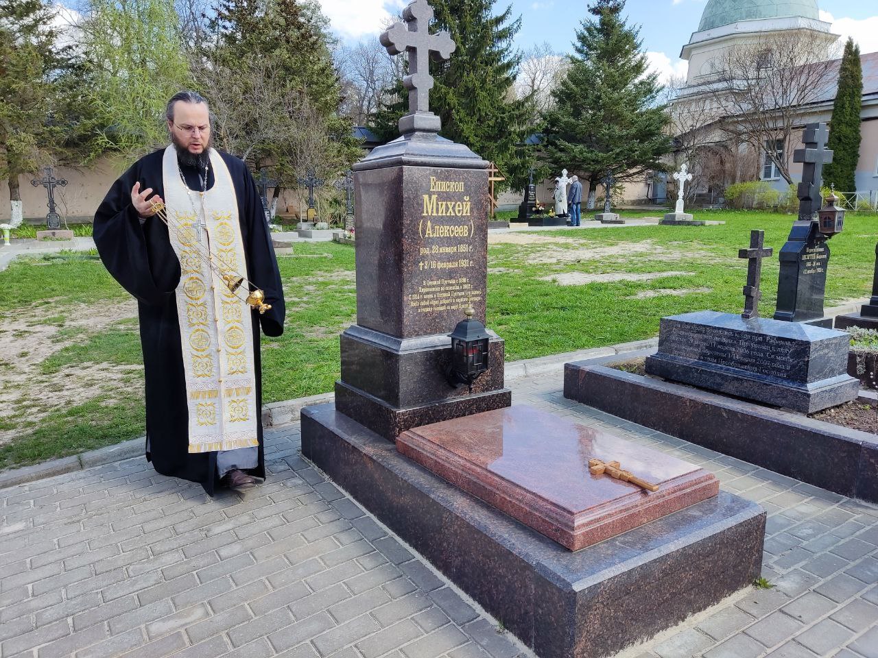 Клирики Успенского собора г. Козельска совершили заупокойную литию на могиле епископа Михея (Алексеева)