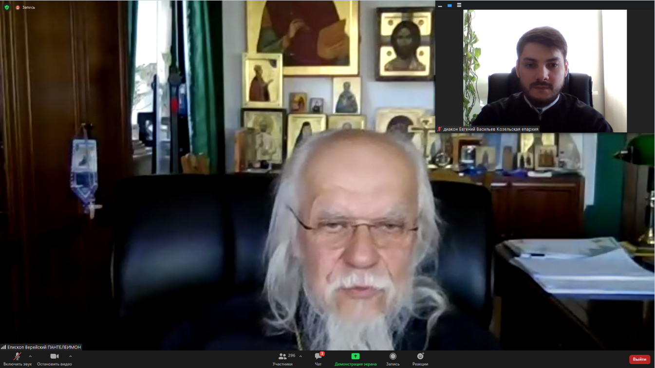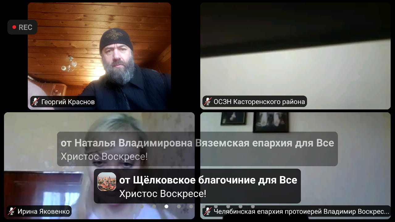 В онлайн – встрече от Козельской епархии приняли участие: настоятель храма Богоявления Господня города Козельска, председатель Отдела по церковной благотворительности и социальному служению Козельской епархии иерей Дионисий Куваев, настоятель храма святого благоверного князя Александра Невского села Заречный Людиновского района, ответственный куратор за пребывание беженцев из Украины, ДНР и ЛНР на территории Козельской епархии в Людиновской районе иерей Георгий Краснов, клирик храма Благовещения Пресвятой Богородицы города Козельска заместитель председателя Отдела по церковной благотворительности Козельской епархии диакон Евгений Васильев.