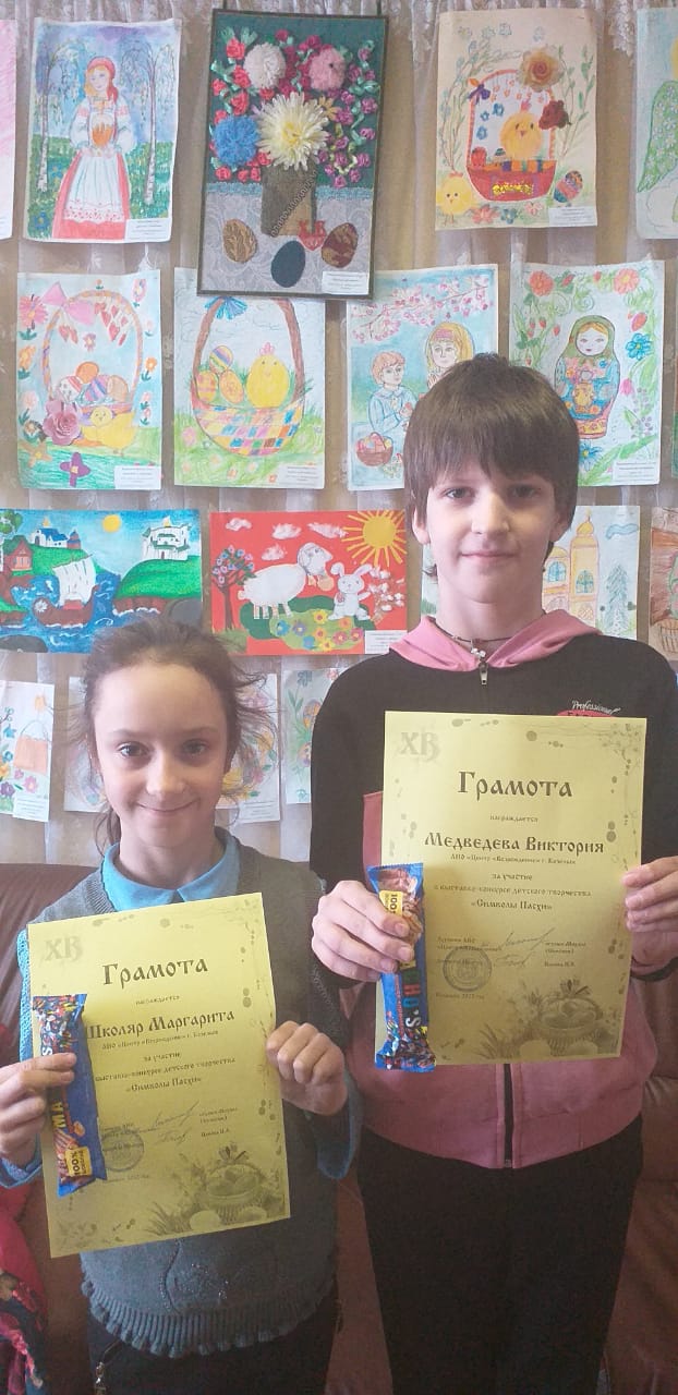 28 апреля 2022 года в Православном детском Центре  «Возрождение» города Козельска были подведены итоги ежегодной выставки-конкурса детского творчества «Символы Пасхи». В этом году в конкурсе приняли участие 175 воспитанников из девяти образовательных учреждений Козельского района и Калужской области: Православный детский Центр «Возрождение» г. Козельск, МБОУ ДО «Козельская школа искусств», Козельская СОШ №1, Козельская ООШ №4, Детский сад «Красная Шапочка» г. Козельск, ГКОУКО «Козельская школа-интернат», ЧУ «Социальный центр «Рождественский» и Воскресная школа г. Сухиничи. Впервые свои работы на конкурс представили воспитанники ГБУ КО СРЦН «Ровесник» г. Сосенский. Дипломами победителя и памятными подарками были награждены 39 человек. 69 детей получили диплом призера конкурса. 67 детей были отмечены грамотой участника.  За подготовку участников конкурса благодарственными письмами были награждены 17 педагогов. Для победителей и участников конкурса воспитанники Театральной студии «Образ» подготовили пасхальную постановку. С работами, представленными на выставке, вы сможете познакомиться на официальном YouTube-канале ДЦ «Возрождение» по ссылке: https://youtu.be/u2K_MHXgsHk