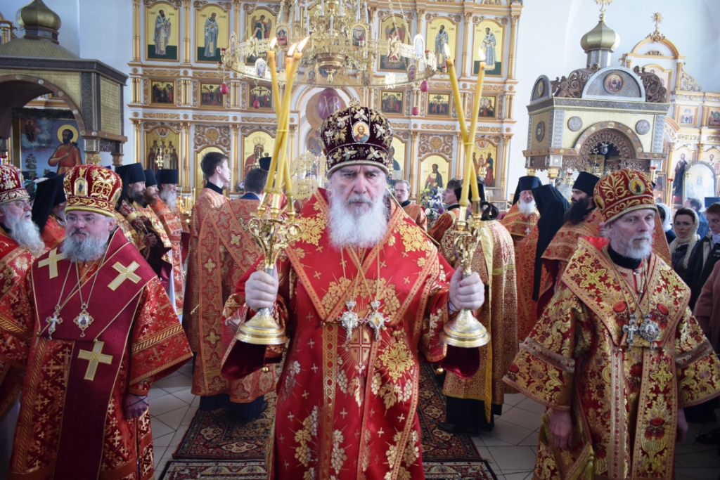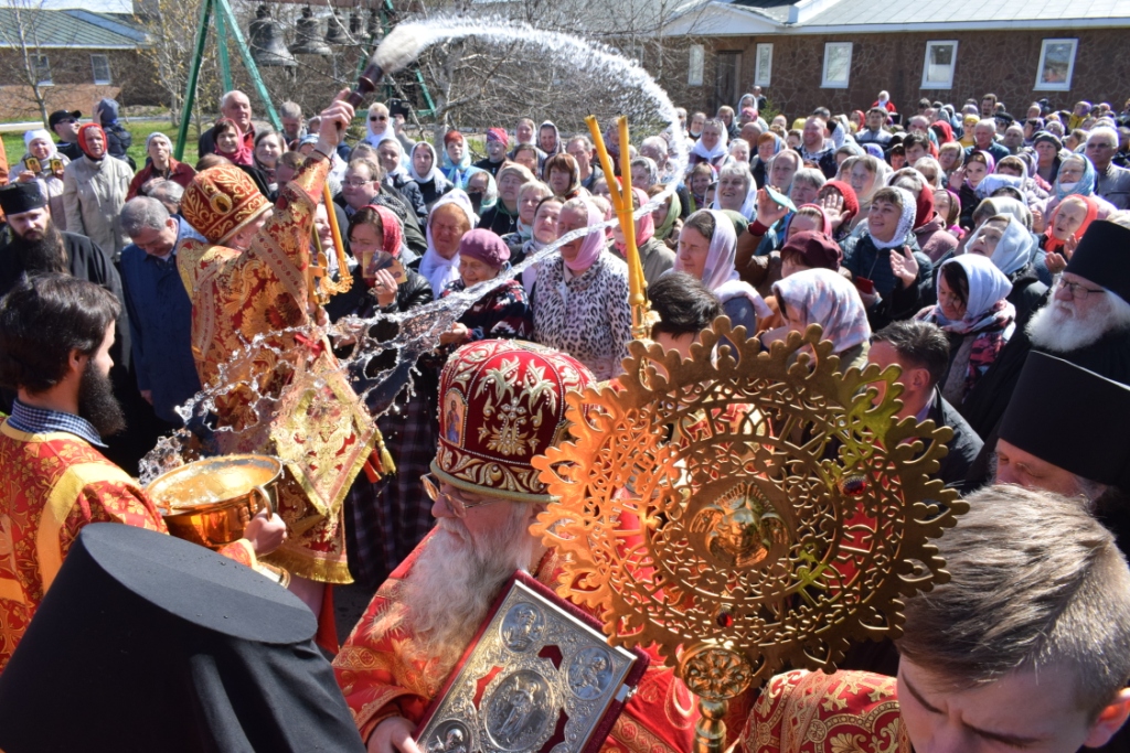 После окончания Литургии с молебным пением прошел крестный ход. Архипастыри, духовенство и богомольцы с радостью в сердцах о Воскресшем Спасителе приветствовали друг друга словами «Христос Воскресе!»