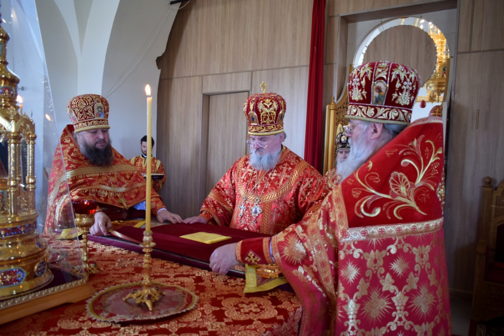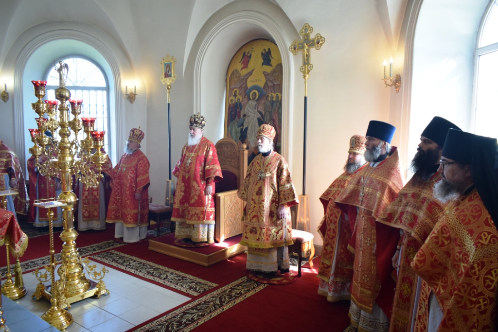 За богослужением архипастырям сослужили настоятель Свято-Георгиевского монастыря игумен Георгий (Евдачев), насельники обители, духовенство Калужской, Козельской и Песоченской епархий. Диаконский чин возглавил протодиакон Алексей Хамтеев.