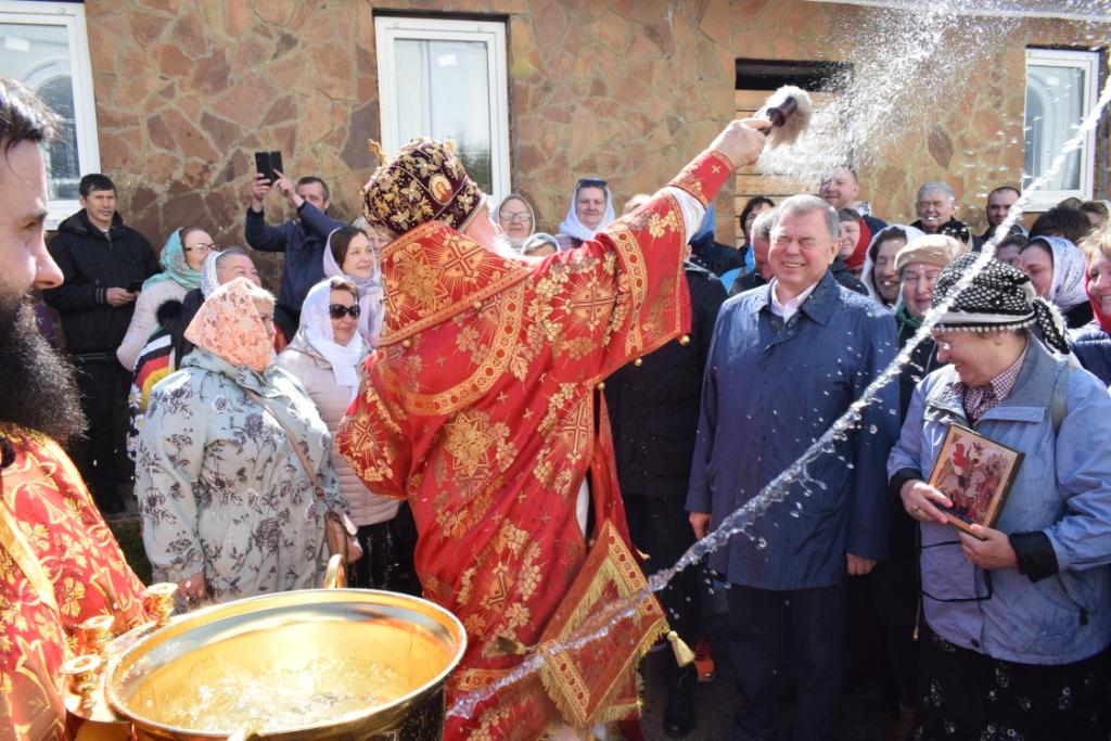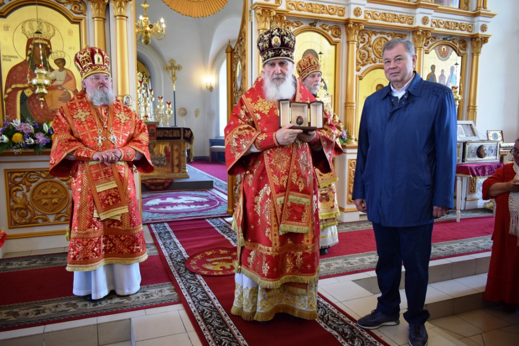 В завершении крестного хода владыка Климент произнес проповедь и вручил Анатолию Дмитриевичу Артамонову пасхальный подарок.