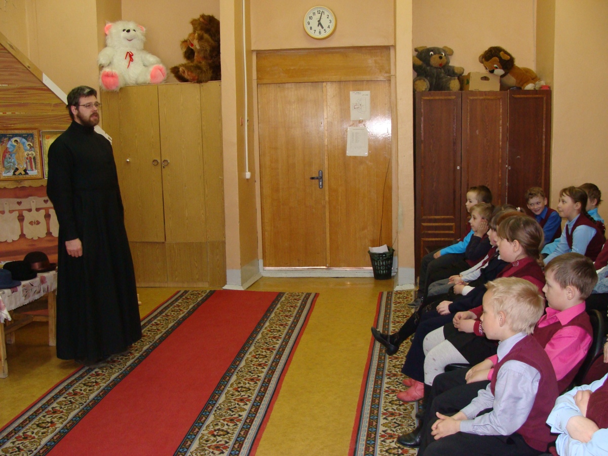 От лица священнослужителей и прихожан г.Сосенский с праздником Пасхи детей поздравил диакон Алексей Боков.