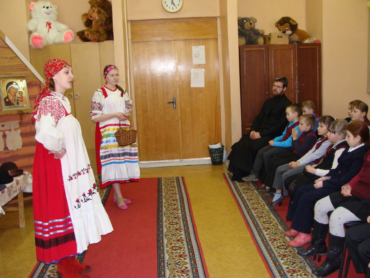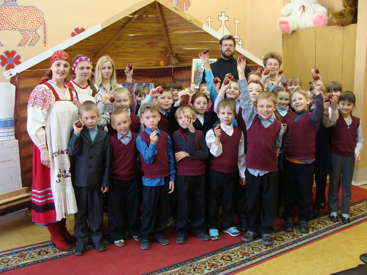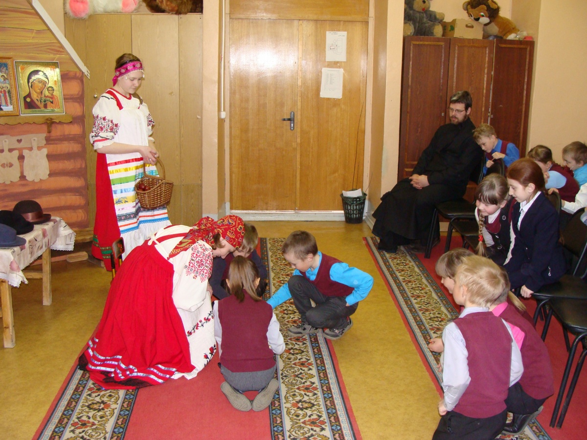 25 апреля. Пятница светлой седмицы. Во дворце культуры г. Сосенский прошел пасхальный утренник для учащихся первых классов средней школы. В рамках занятий по возрождению культурных традиций, работники ДК «Промитей» рассказали детям о смысле праздника Пасхи, познакомили их с русскими народными забавами и играми, которыми сопровождалось на Руси празднование Пасхи.
