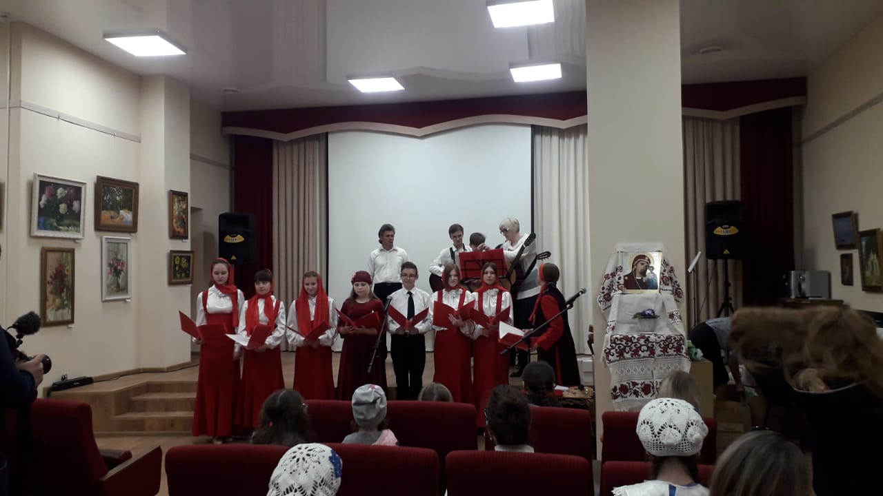 8 мая 2022 года в Музее на Набережной города Людиново прошла торжественная церемония награждения по итогам выставки в рамках открытого епархиального фестиваля «Звенит Пасхальная радость». На выставке были представлены 368 творческих работ из 22 организаций Калужской области: Людиновского, Хвастовичского и Кировского районов. Благочинный Людиновского округа Козельской епархии настоятель Казанского собора протоиерей Алексий Жиганов благословил всех на начало доброго дела. И после молитвы началась торжественная часть. В каждой номинации победители получили дипломы, благодарственные письма и шоколадки. Украшением официальной части мероприятия были музыкальные подарки от творческих коллективов Воскресной школы «Светоч», руководитель Галина Александровна Галий и регента церковного хора Казанского собора Лидии Волковой. Всем творческим коллективам организаций – участников были вручены благодарственные письма за активное участие в фестивале и пакеты со сладостями для каждого участника выставки. В этот день звучали добрые слова в адрес всех женщин. У православных христиан принято в день святых Жен Мироносиц поздравлять всех женщин. Для них также звучали музыкальные подарки. Здесь же отец Алексий поздравил двух педагогов Воскресной школы «Светоч» Маргариту Александровну Александрову и Людмилу Васильевну Мамаеву с юбилейными датами, пожелав им и дальше доброго здравия, и творческих успехов в их добрых делах, а также подарив подарочные издания «Библии» и букеты цветов. По традиции юбилярам пропели многая лета. В конце официальной части, накануне 9 мая — Дня Победы в Великой Отечественной войне, творческие детские коллективы и весь зал вместе исполнили всеми любимые песни военных лет: «Катюша» и «День Победы», как дань памяти и уважения ко всем фронтовикам и людям, пережившим тяжёлые дни войны.