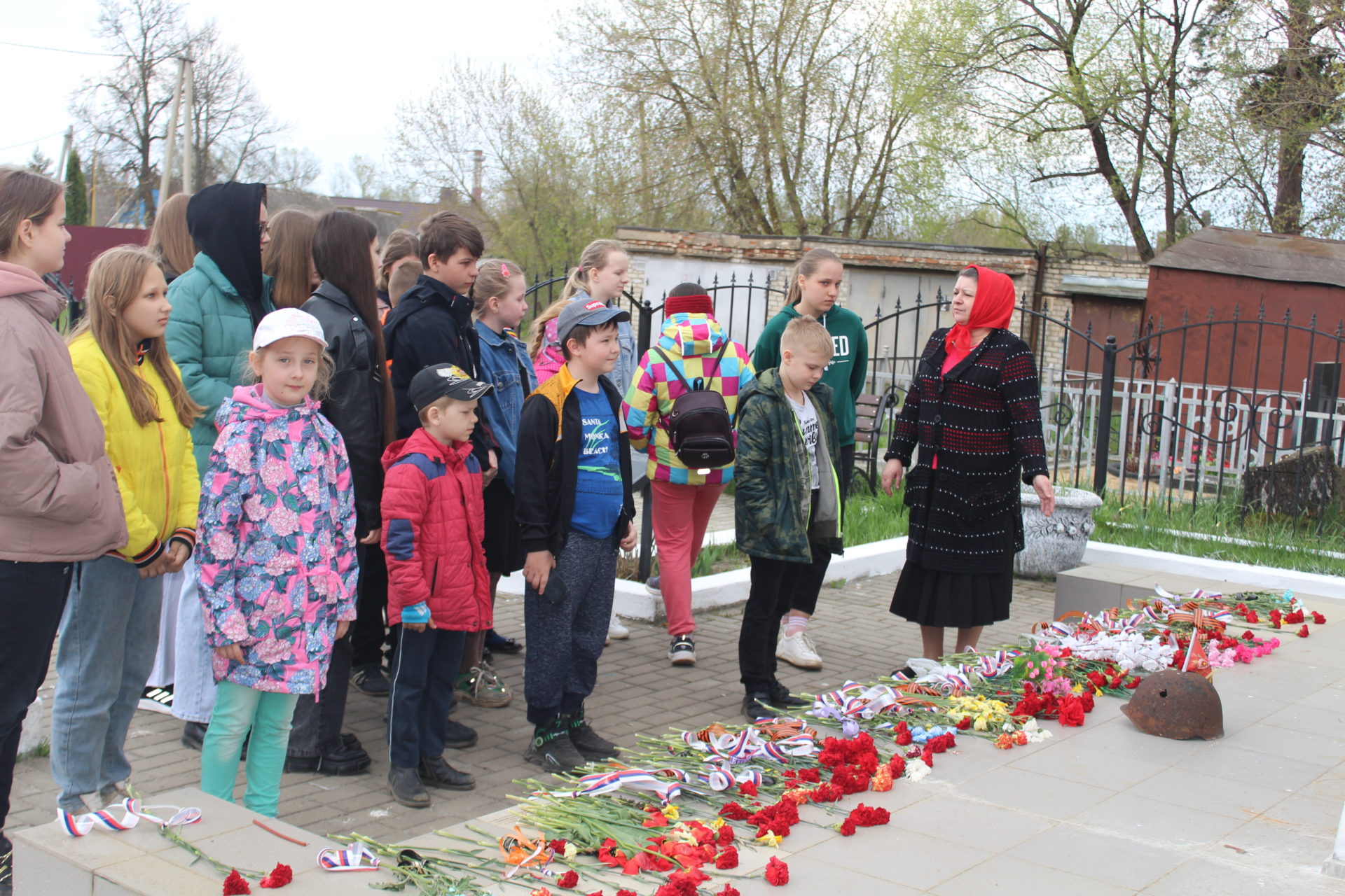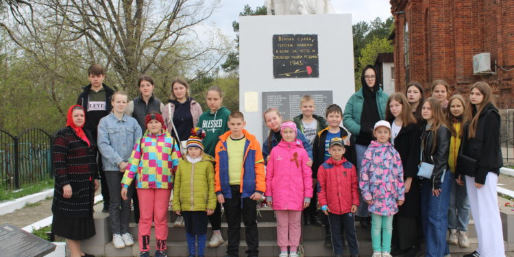Накануне празднования Дня Победы на братской могиле у стен храма учащиеся воскресной школы «Радонеж» провели урок памяти, посвященный павшим во время Великой Отечественной Войны. Преподаватель школы Клячина Татьяна Ивановна рассказала о подвиге 28летнего летчика Мамина Александра, который ценой своей жизни спас детей из немецкого плена, которых готовили как доноров для немецких солдат.