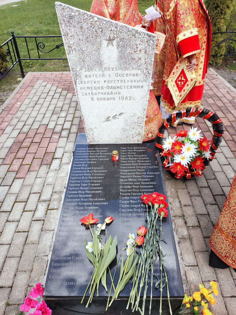 9 мая, по завершении Божественной литургии в храме святых первоверховных апостолов Петра и Павла, епископ Козельский и Людиновский Никита совершил заупокойное богослужение на братской могиле расстрелянных 8 января 1942 года местных жителях села Овсорок.