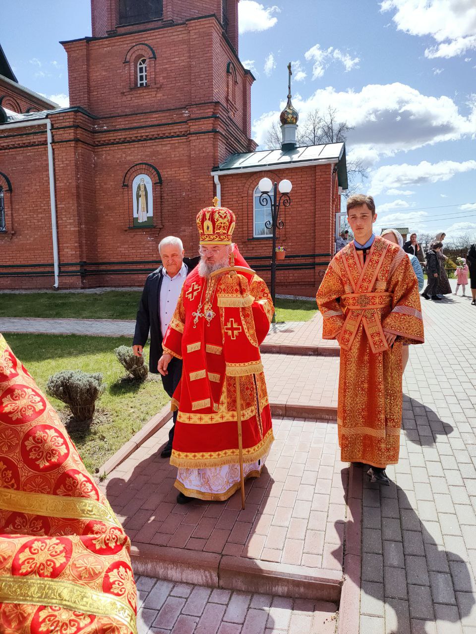 Архипастырю сослужили священнослужители, принимавшие участие в совершении литургии.