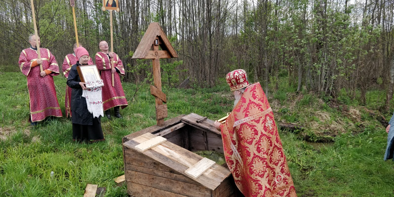 По окончании водосвятного молебна богомольцы Крестным ходом обошли храм и затем проследовали на святой источник в честь Све́нской-Пече́рской иконы Божией Матери, который именуется в народе «Коверзнев колодец».