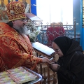 После отпуста богослужения владыка поздравил молящихся с великим праздником Воскресения Христова и преподнес всем пасхальные подарки.