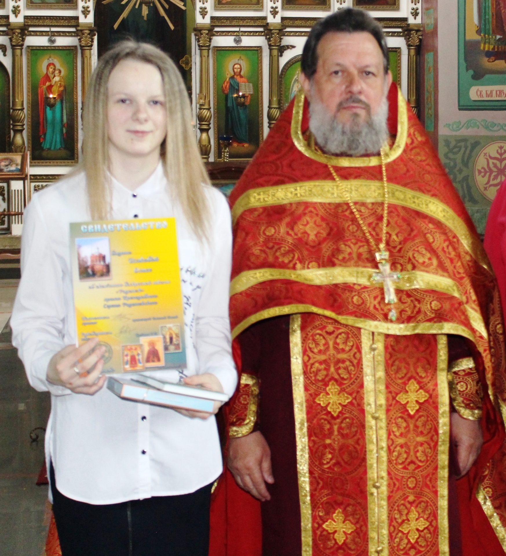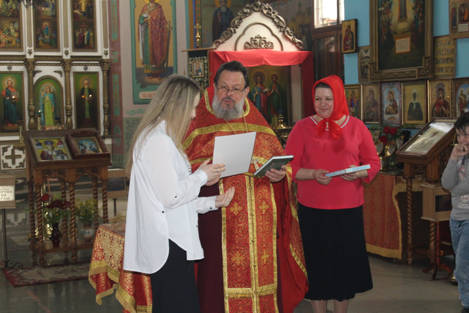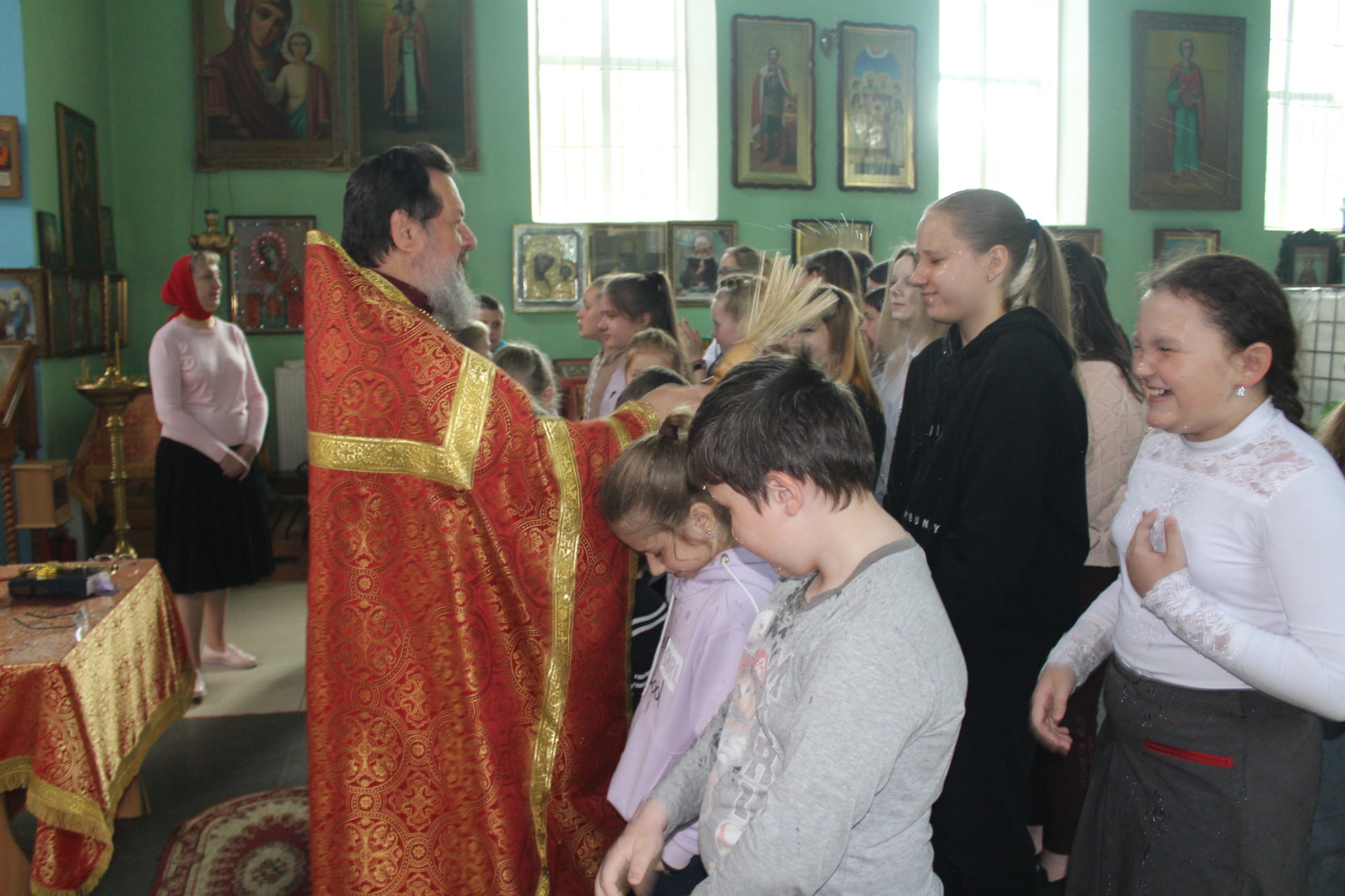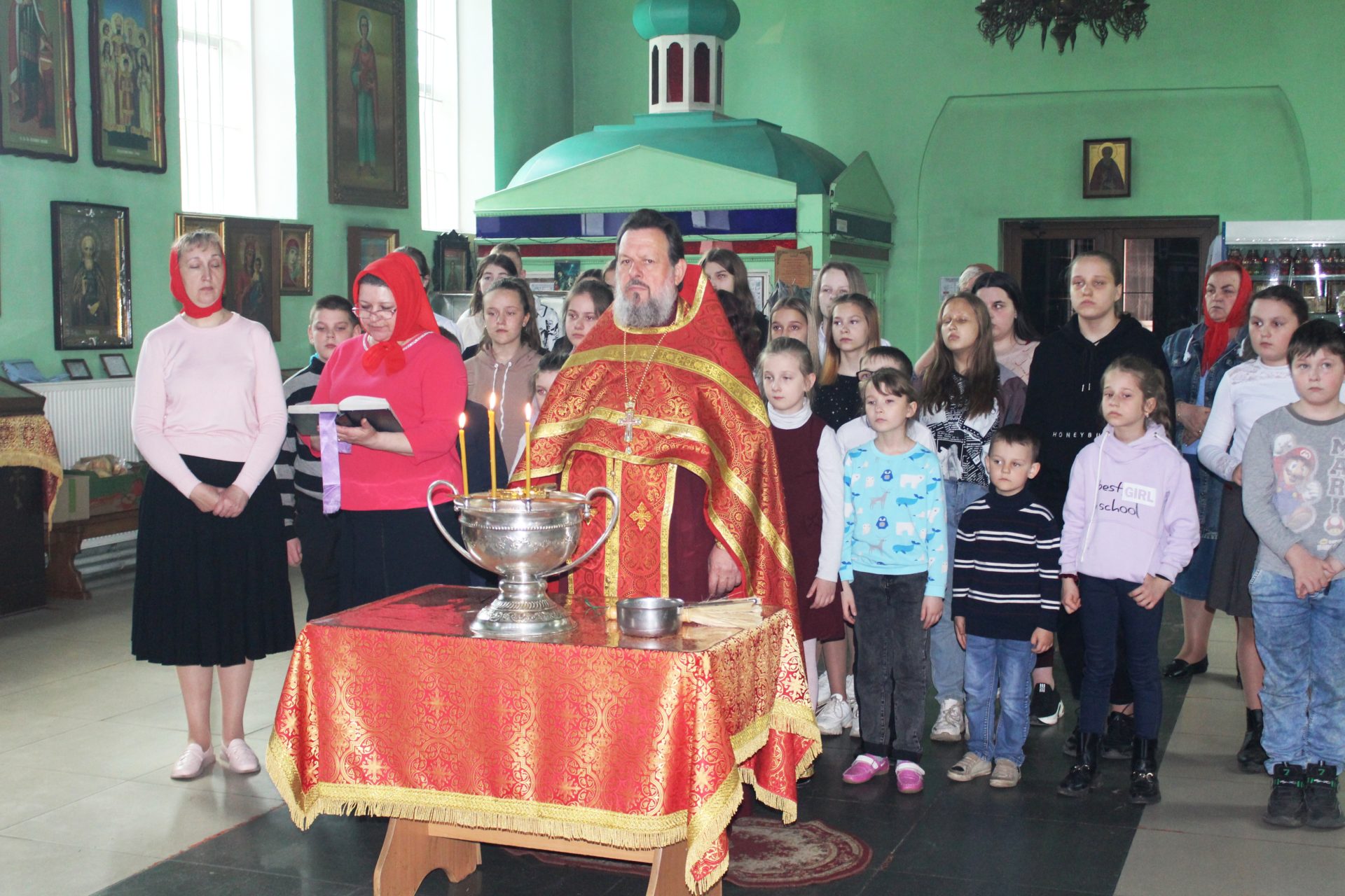 Отец Василий отслужил благодарственный молебен за успешно прошедший год обучения, по завершении которого батюшка окропил всех детей и родителей святой водой. В конце праздника отец Василий поздравил выпускников с окончанием Воскресной школы, переходом ребят на следующую ступеньку их жизни. Батюшка вручил выпускникам свидетельство об окончании Воскресной школы и пожелал, чтобы они, выйдя из ее стен, никогда не забывали то, чему их учили, пожелал помощи Божией в грядущей взрослой жизни.