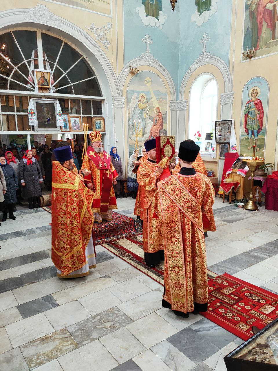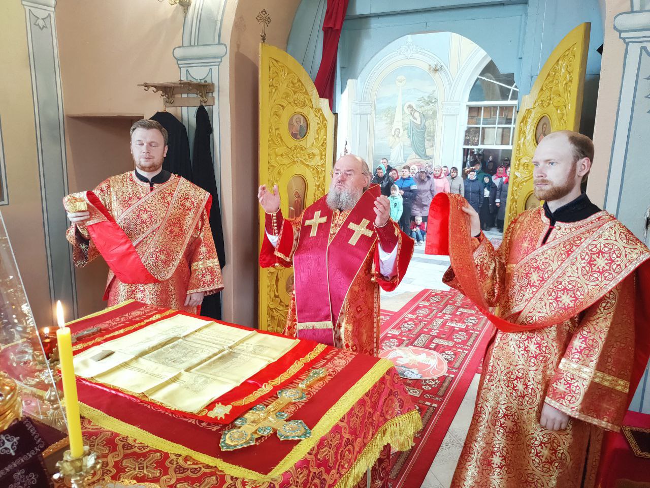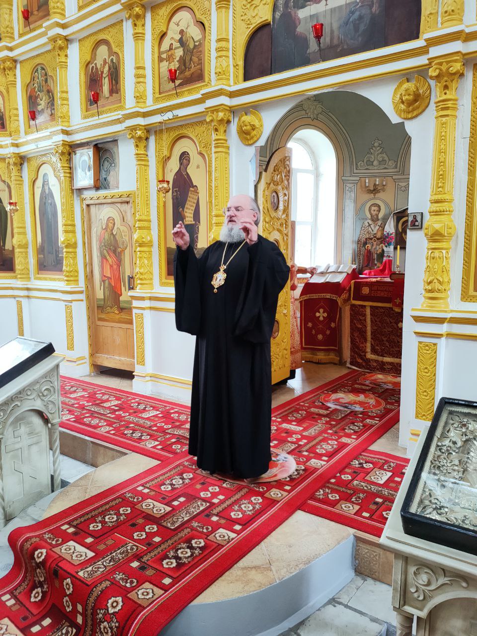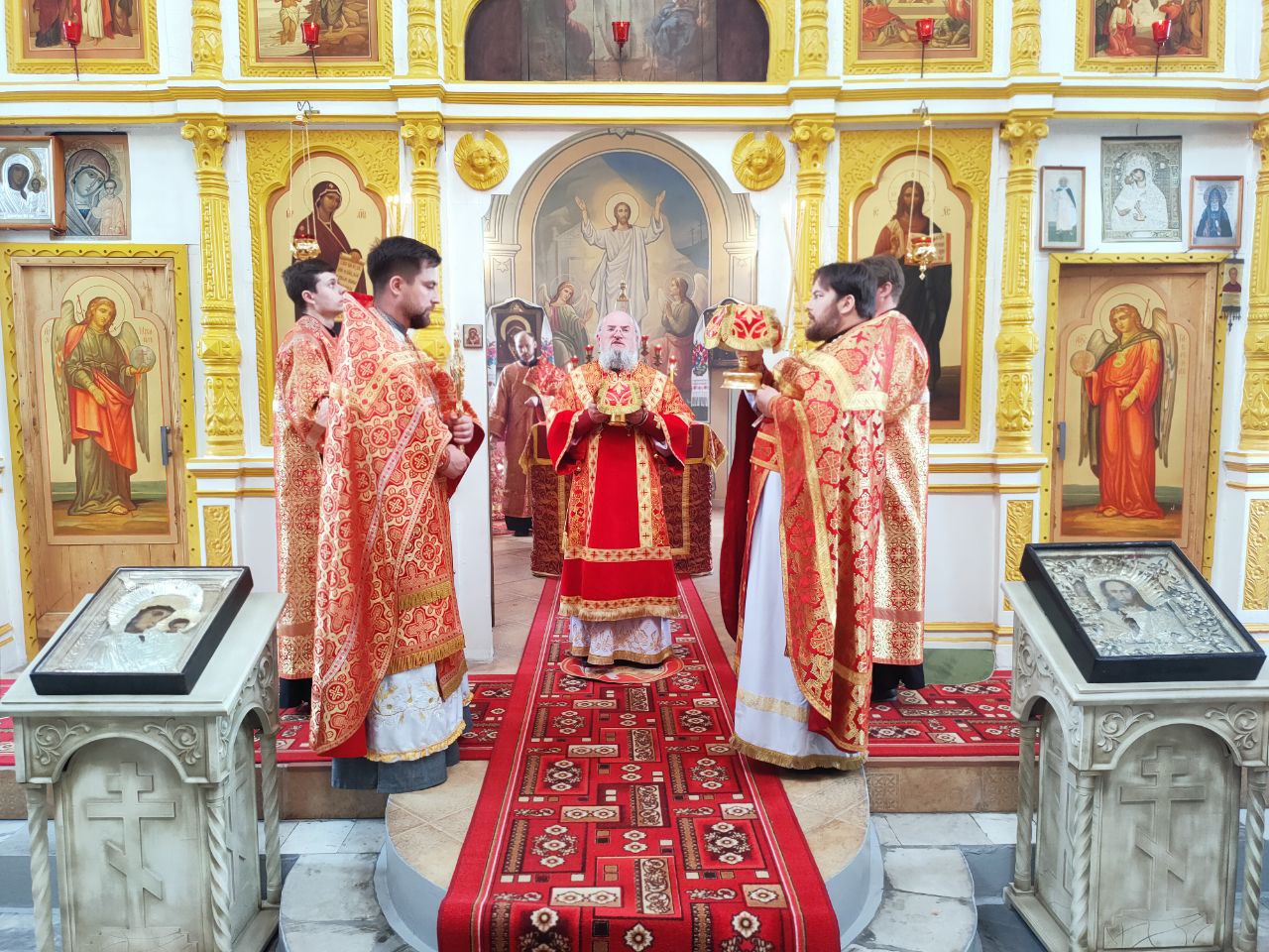 За богослужением преосвященному владыке сослужили: протоиерей Антоний Хатунцев, иерей Андрей Ахмедов – настоятель храма, диакон Евгений Ковригин и иеродиакон Лука (Старостин).