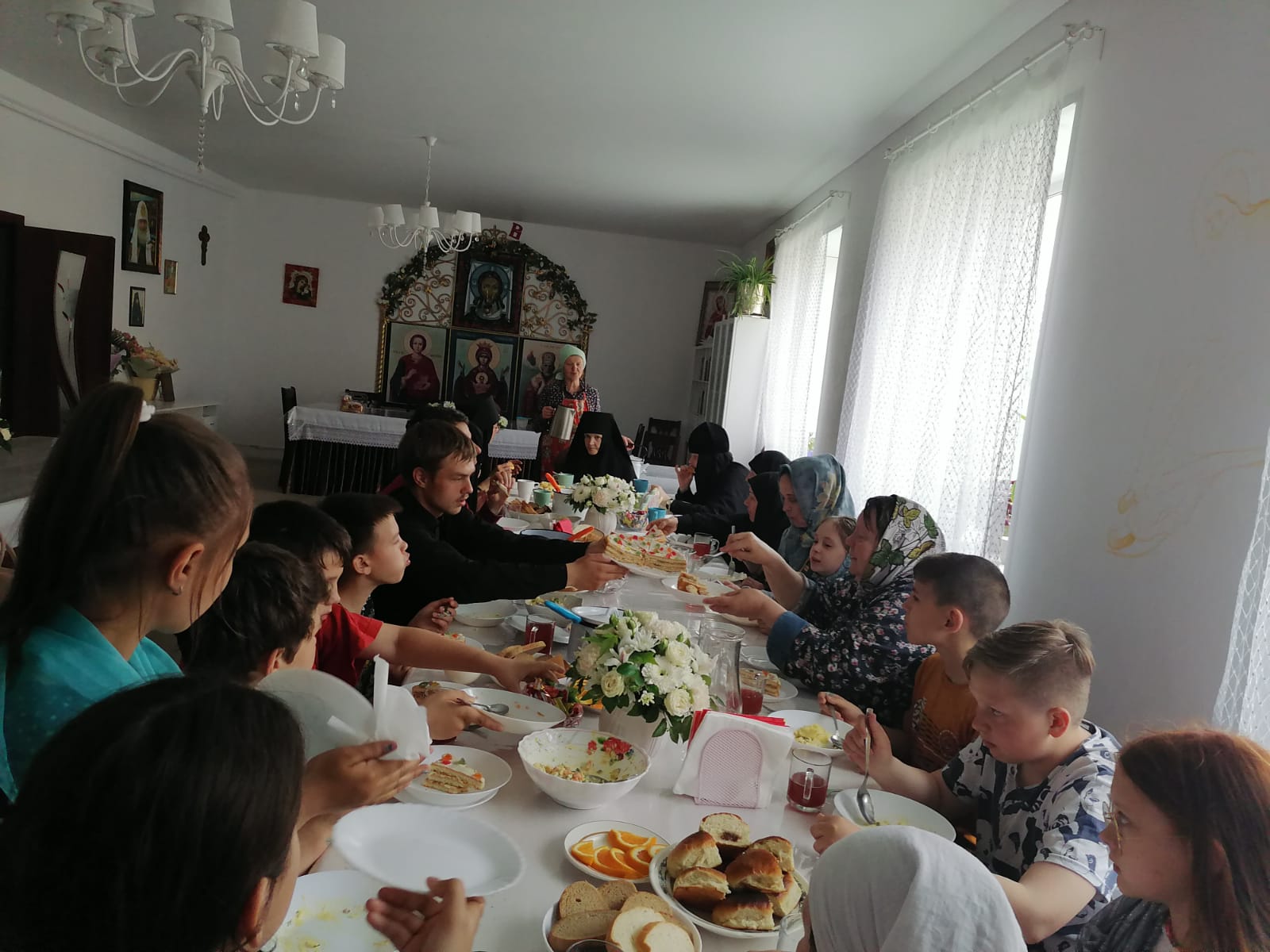 Поздравили игуменью монастыря Анастасию (Дремину) с престольным праздником. Поздравить матушку приехали игуменья Михаила (Осипова) с сестрами из Свято-Успенского Гремячего монастыря и игуменья Параскева (Ляхова) с сестрами из Ждамировского монастыря в честь Калужской иконы Божией Матери. После совместного чаепития дети и монахини исполнили духовные песнопения. Расстались все с радостью на сердце от встречи и договорились встретиться в августе.