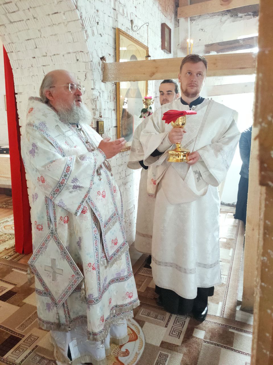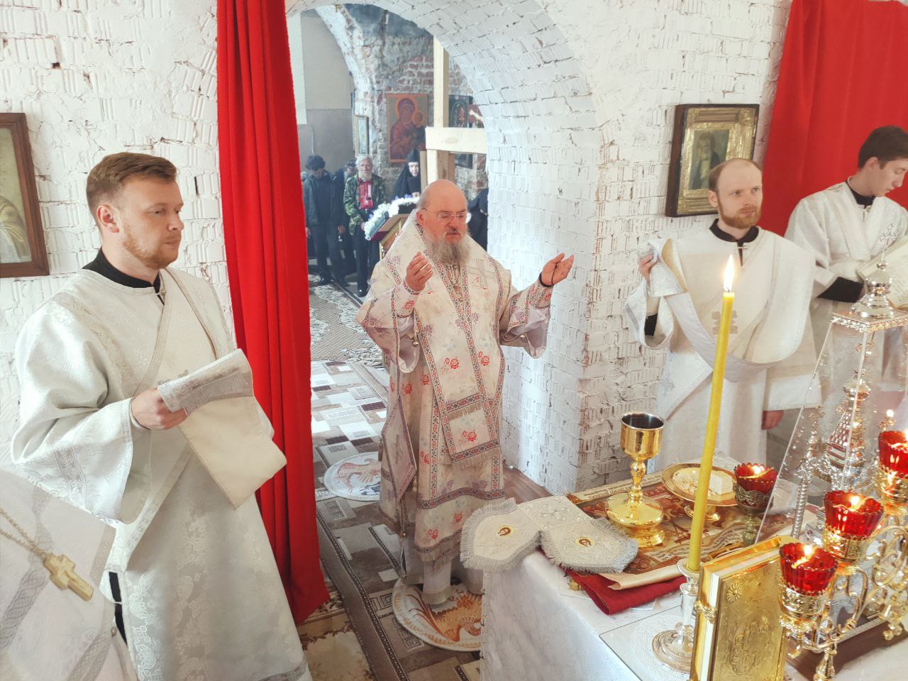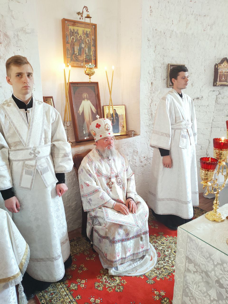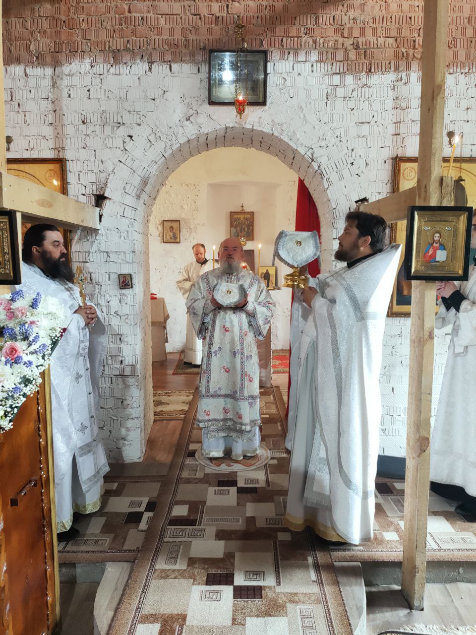Архипастырю сослужили: протоиерей Антоний Хатунцев, иерей Ярослав Стрельников, диакон Евгений Ковригин и иеродиакон Лука (Старостин).