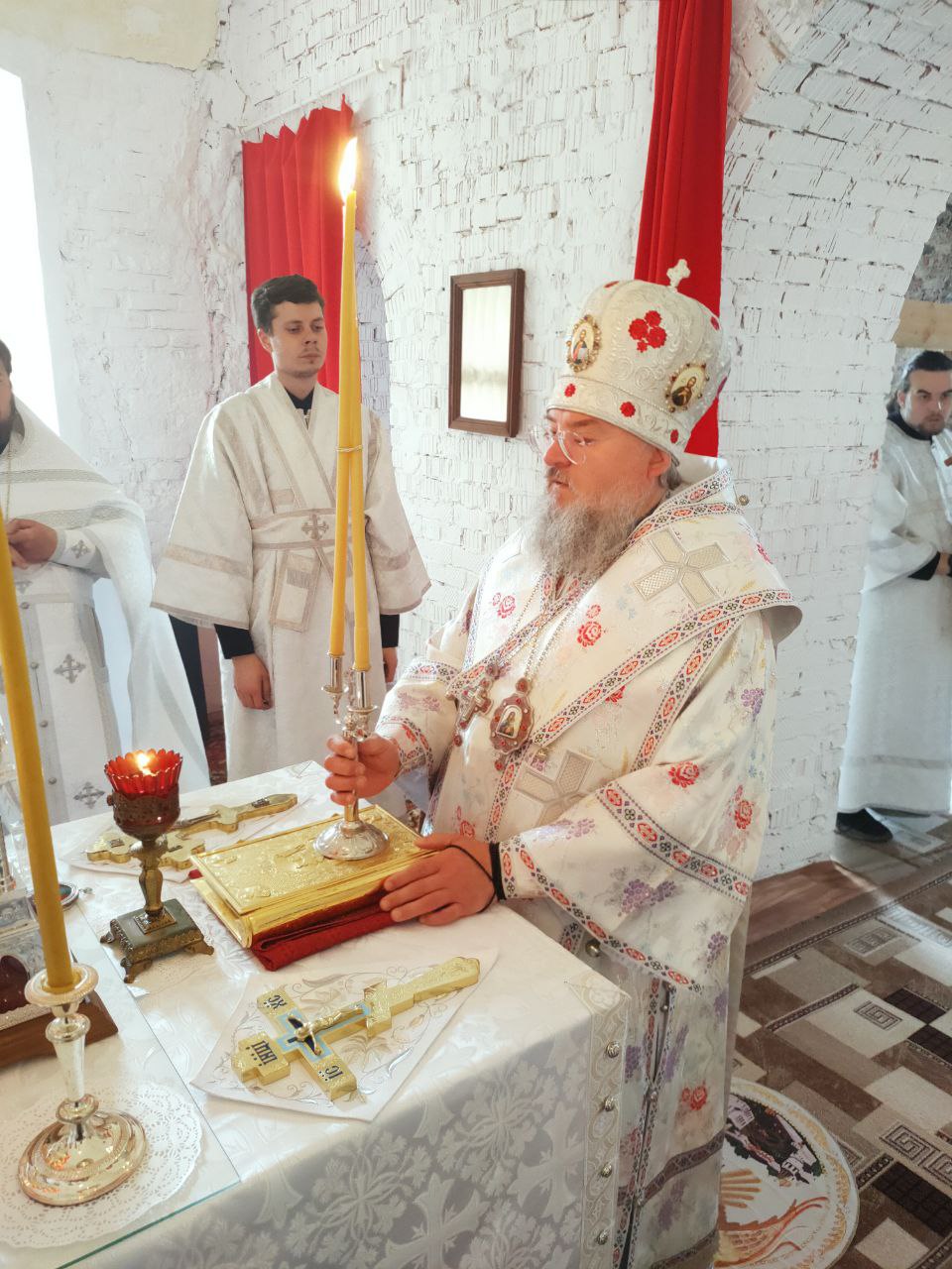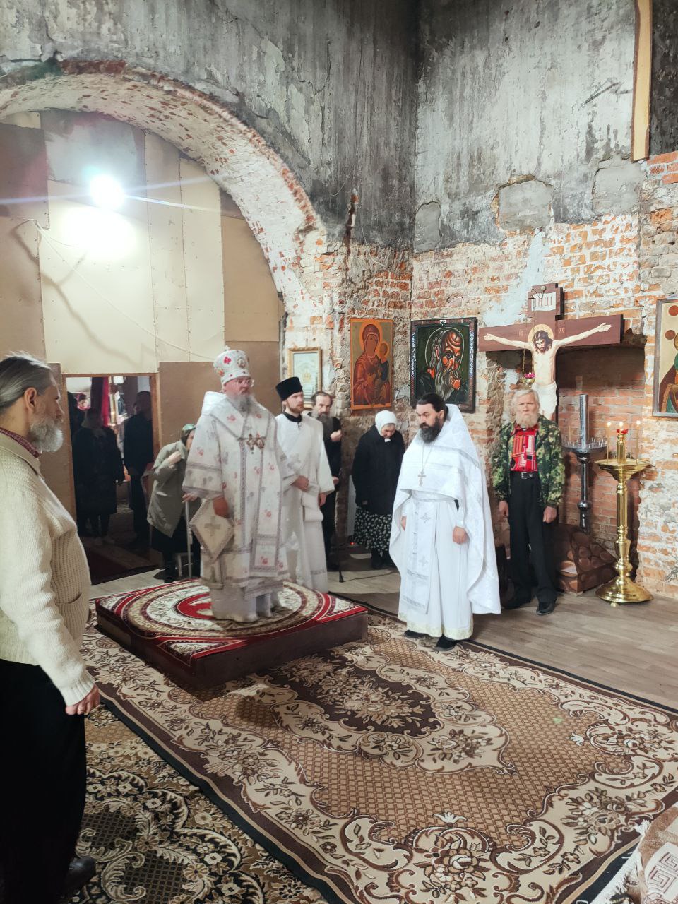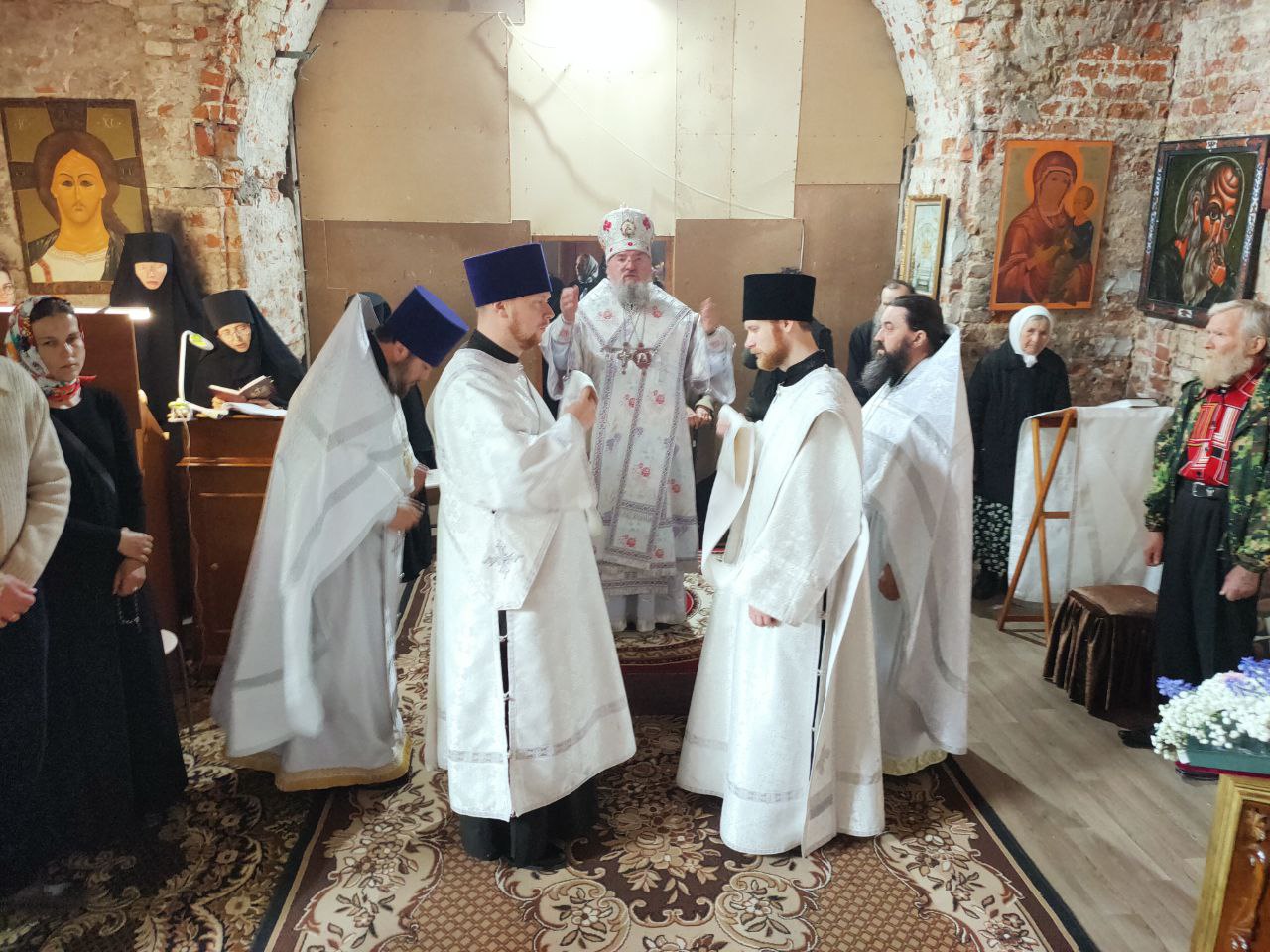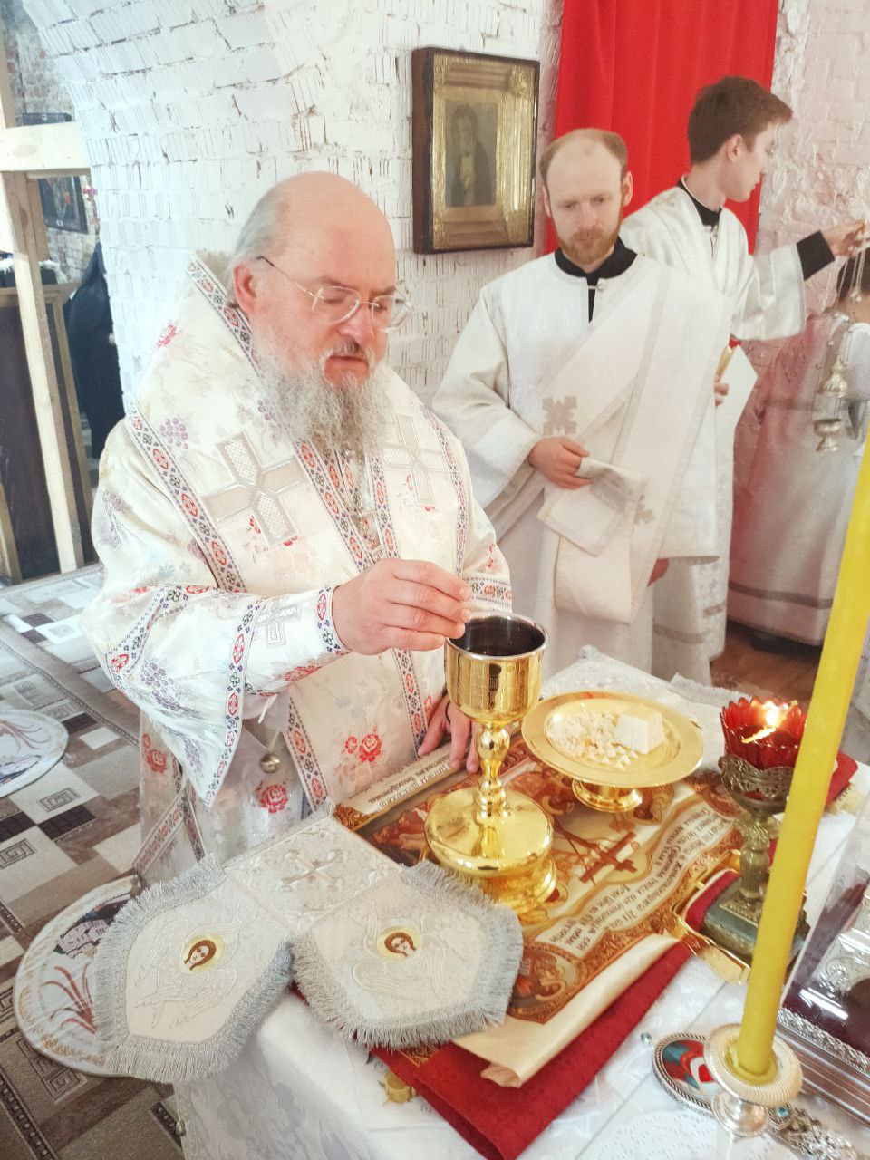 Архипастырю сослужили: протоиерей Антоний Хатунцев, иерей Ярослав Стрельников, диакон Евгений Ковригин и иеродиакон Лука (Старостин).