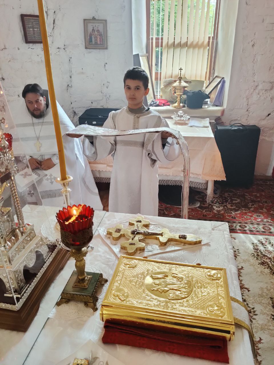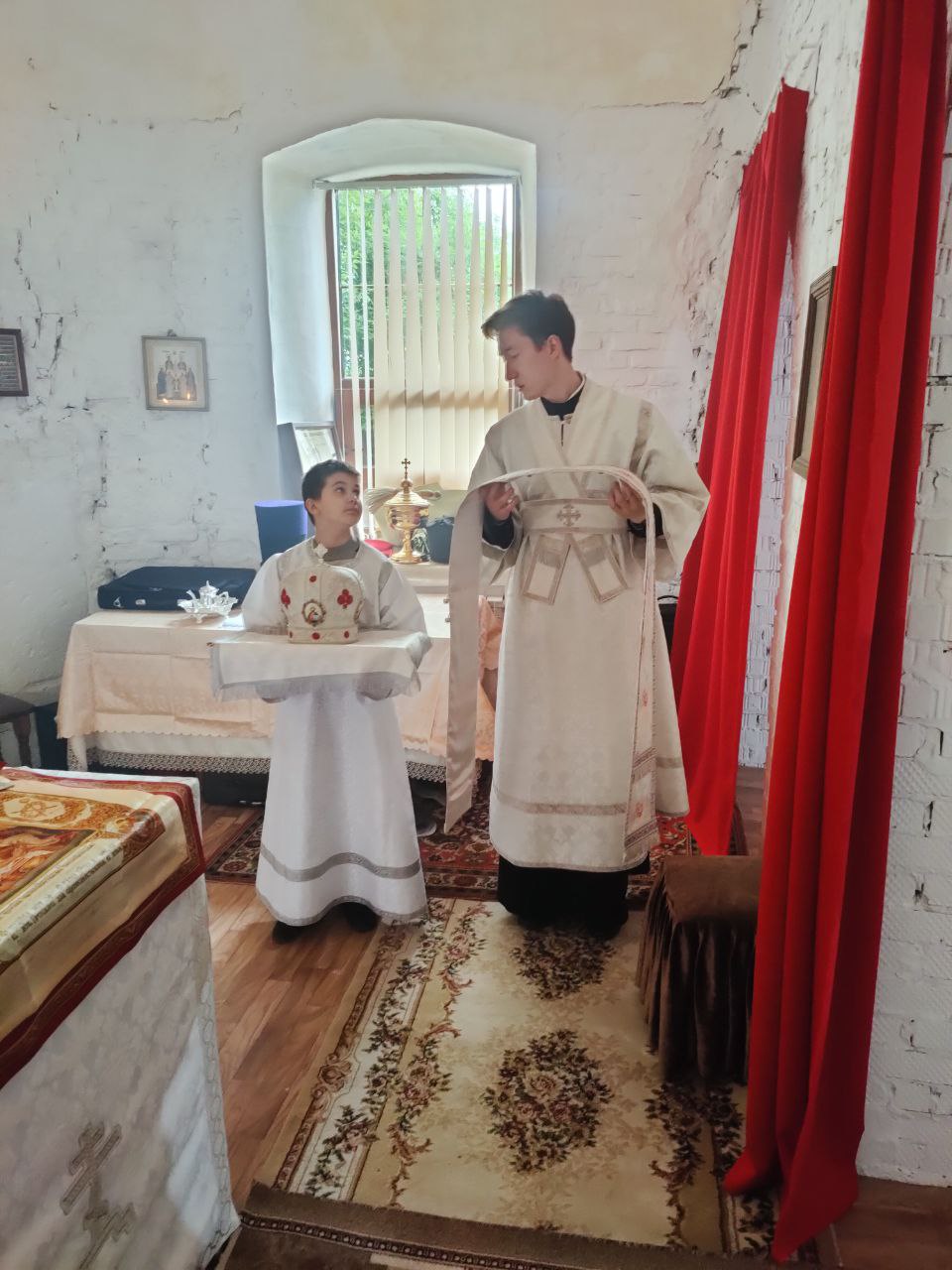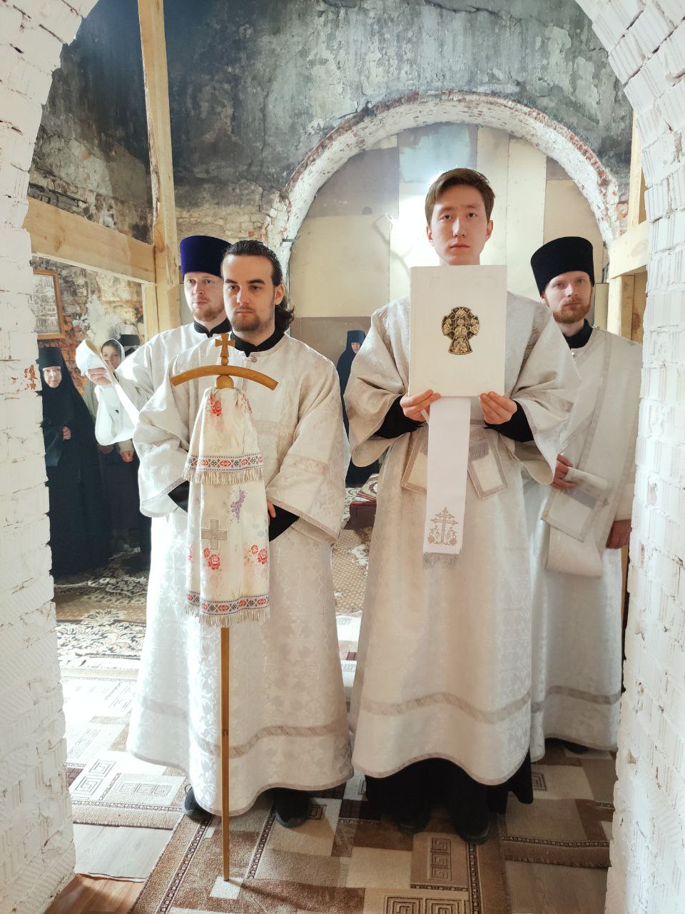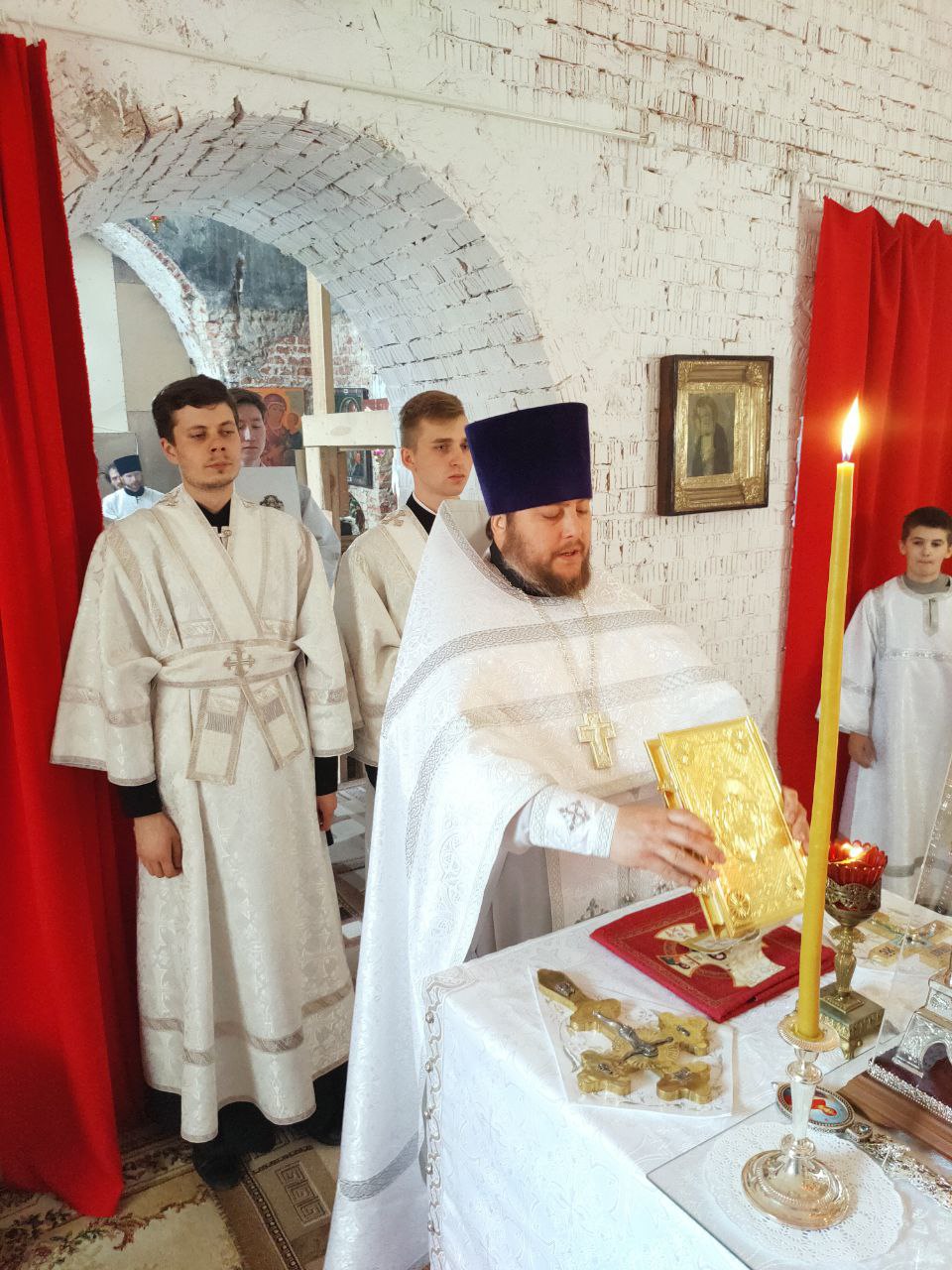 Архипастырю сослужили: протоиерей Антоний Хатунцев, иерей Ярослав Стрельников, диакон Евгений Ковригин и иеродиакон Лука (Старостин).