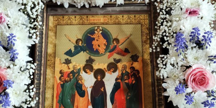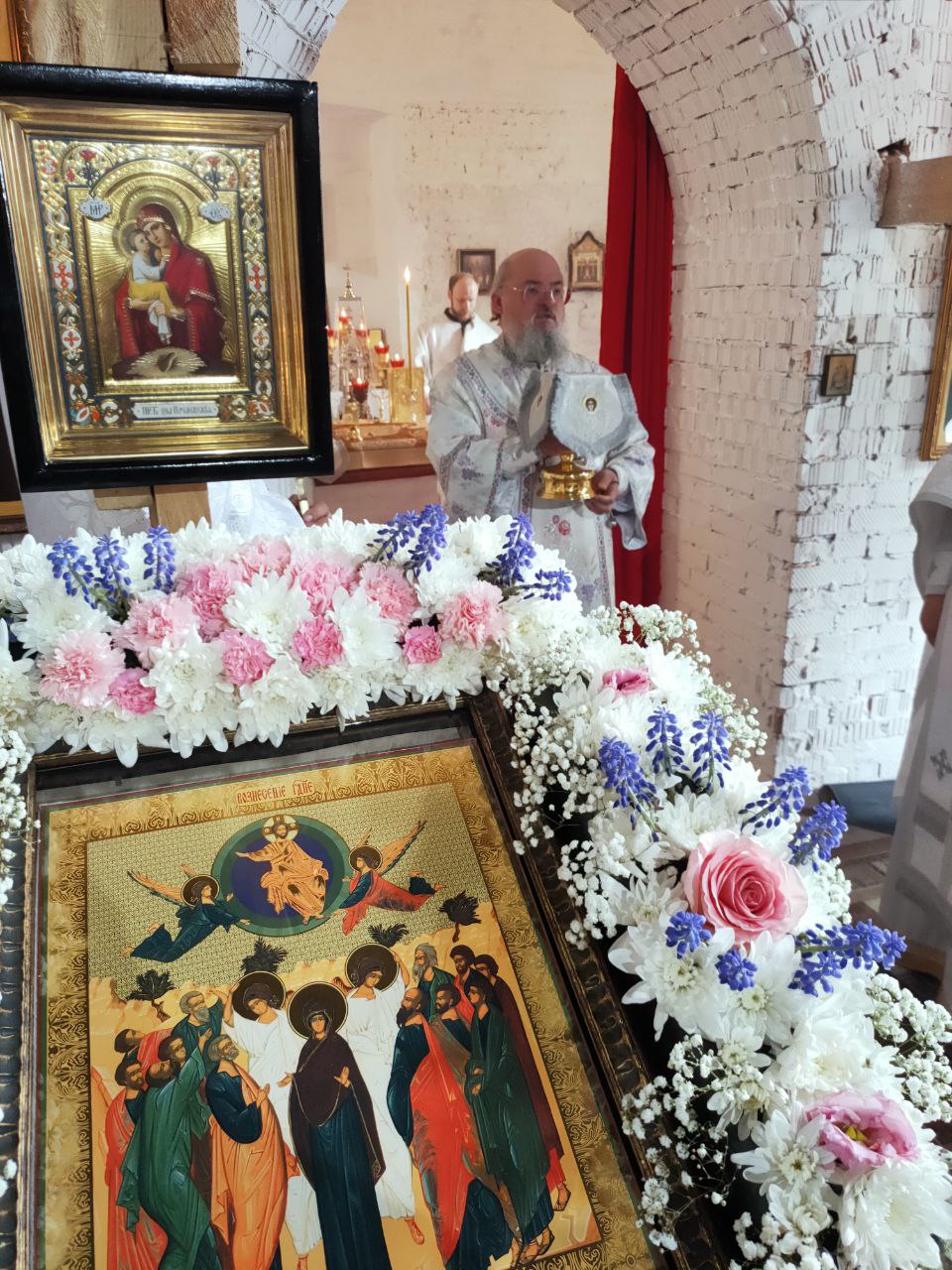 По отпусте литургии священнослужители совершили славление праздника Вознесения, а затем владыка обратился к богомольцам с проповедью.