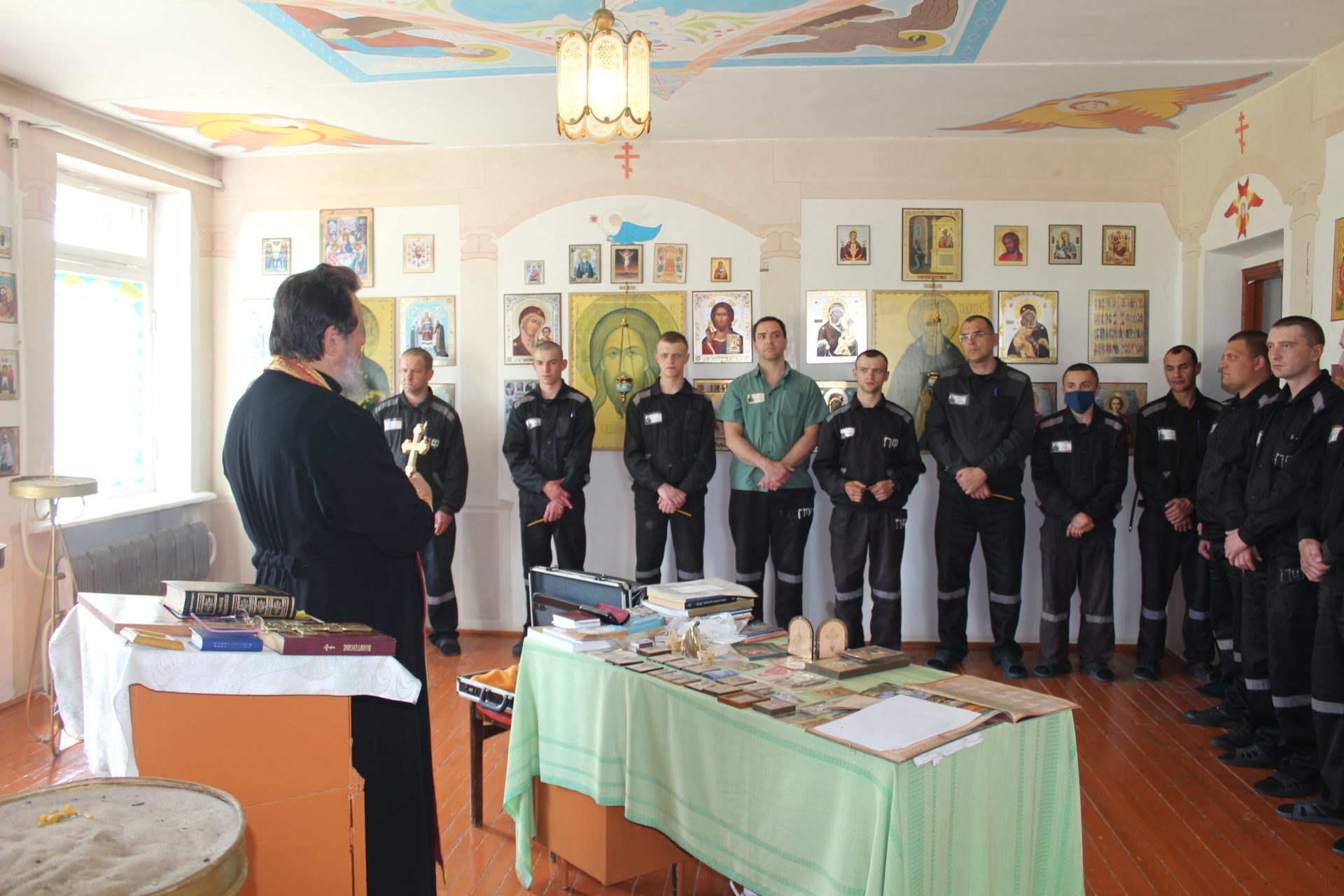 Отец Василий совершил молебное пение, а затем провел беседу с осужденными.