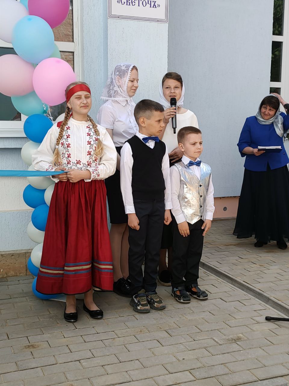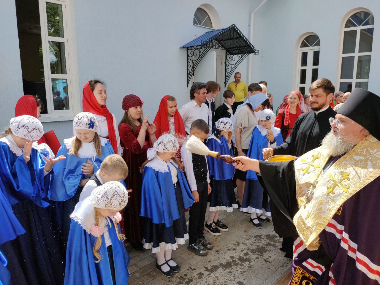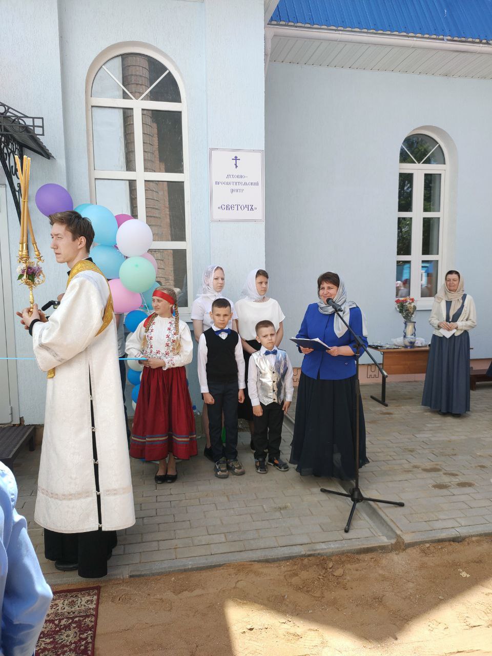 По доброй традиции перерезать ленточку предоставили присутствующим архиереям владыке Максимилану и владыке Никите, а также настоятелю собора протоиерею Алексию Жиганову, благотворителям храма и помощникам в строительстве центра Потапову Олегу Анатольевичу, Хопченко Алексею Евгеньевичу и деткам из Воскресной школы «Светоч».