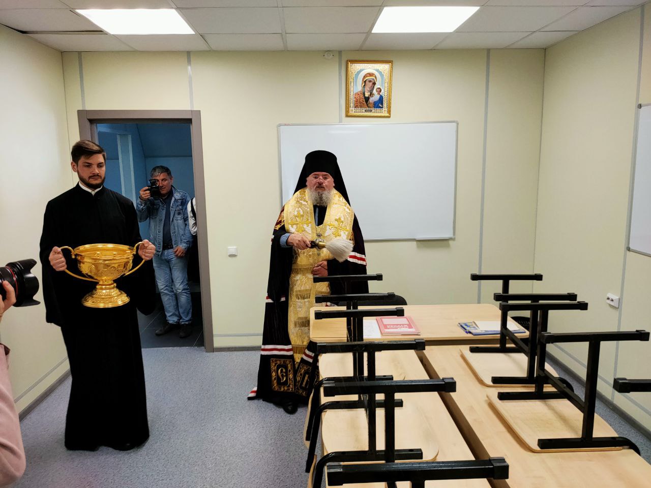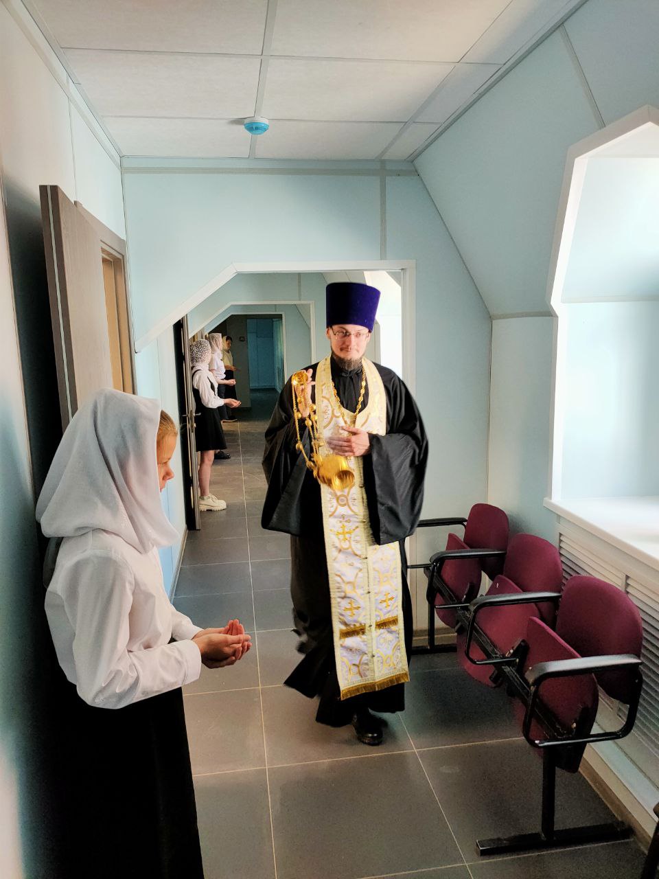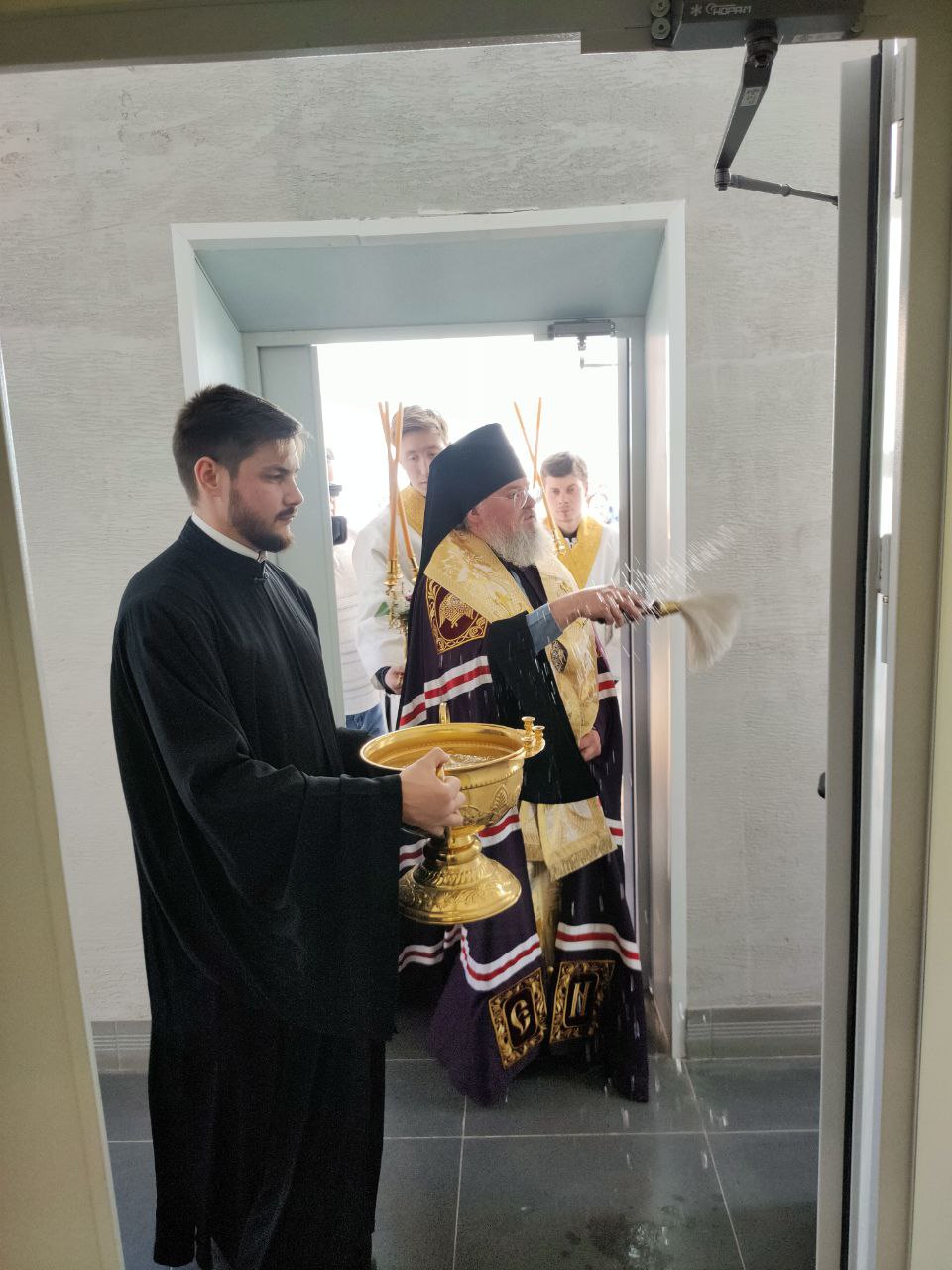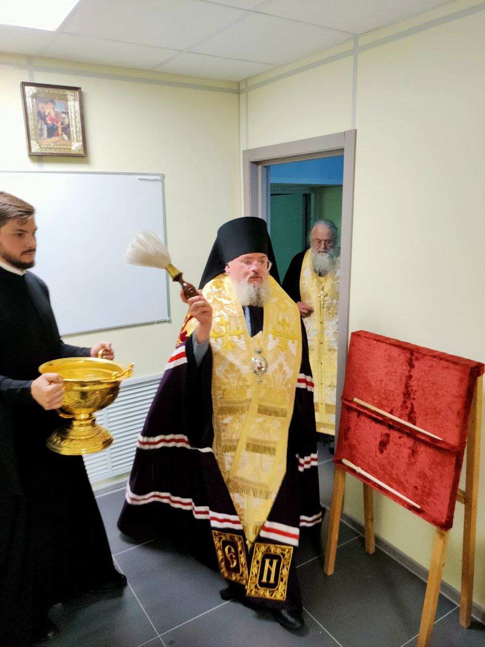 Владыка Никита окропил святой водой новое здание центра, все его помещения: большой светлый зал – трапезную, нижний этаж центра и его мансардную часть.