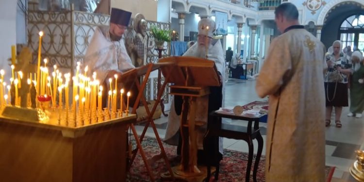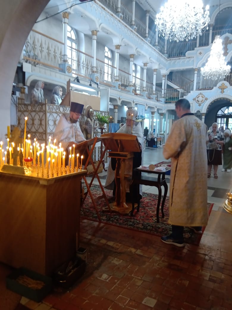 11 июня 2022 года в Казанском соборе города Людиново после Божественной литургии настоятель храма протоиерей Алексий Жиганов в сослужении диакона Андрея Соколова отслужили панихиду об усопших, которая совершается накануне праздника Святой Пятидесятницы – Троицы.
