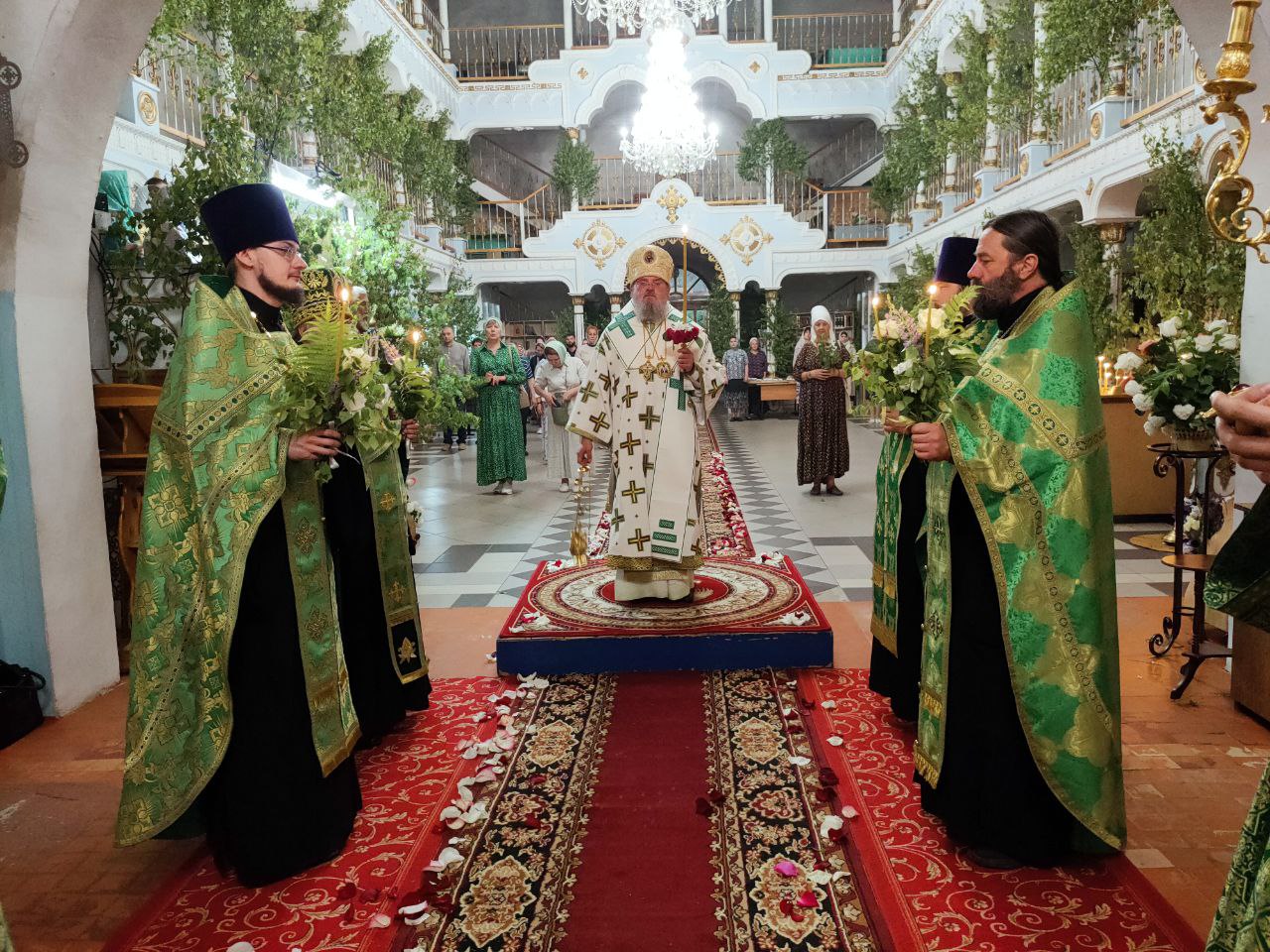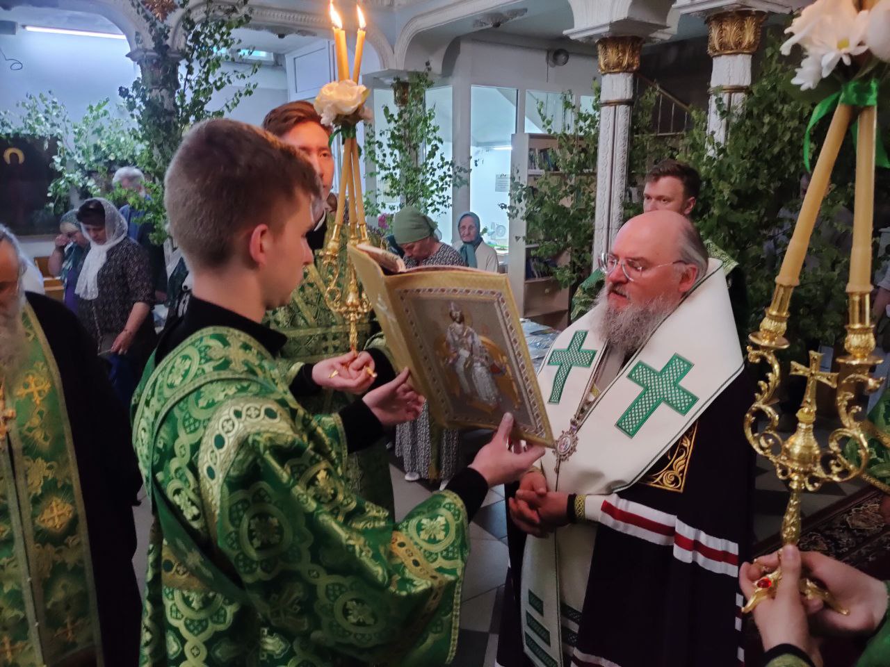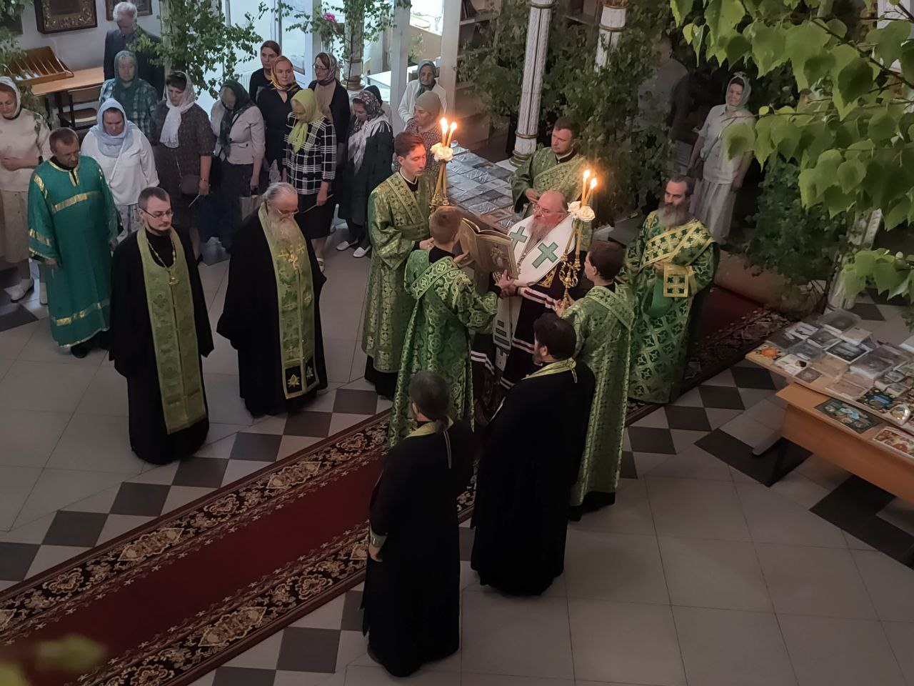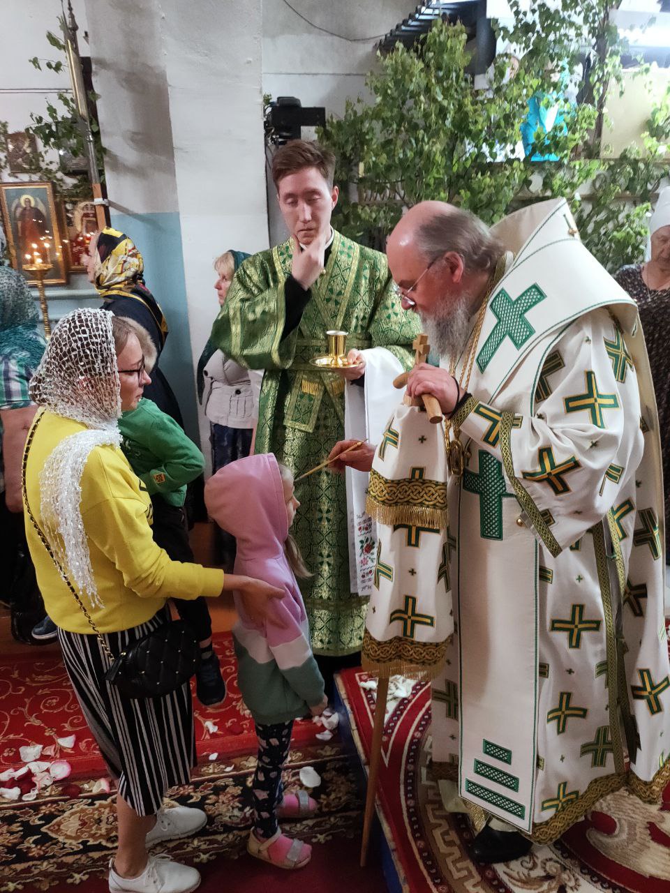 Преосвященному владыке сослужили: благочинный округа, настоятель храма, духовник епархии протоиерей Алексий Жиганов, протоиерей Антоний Хатунцев, иерей Алексий Сначев, иерей Георгий Краснов, диакон Евгений Ковригин и диакон Андрей Соколов.