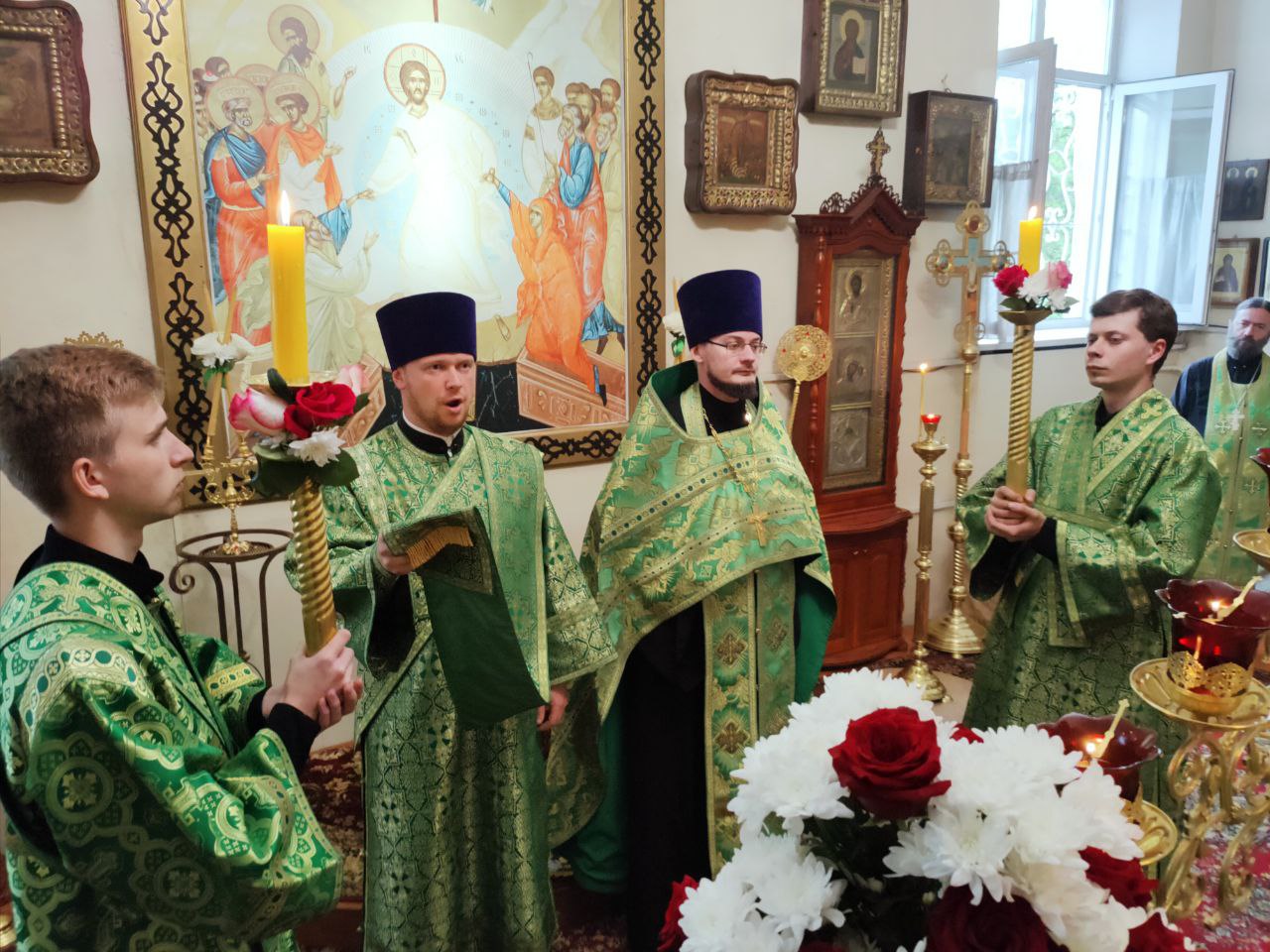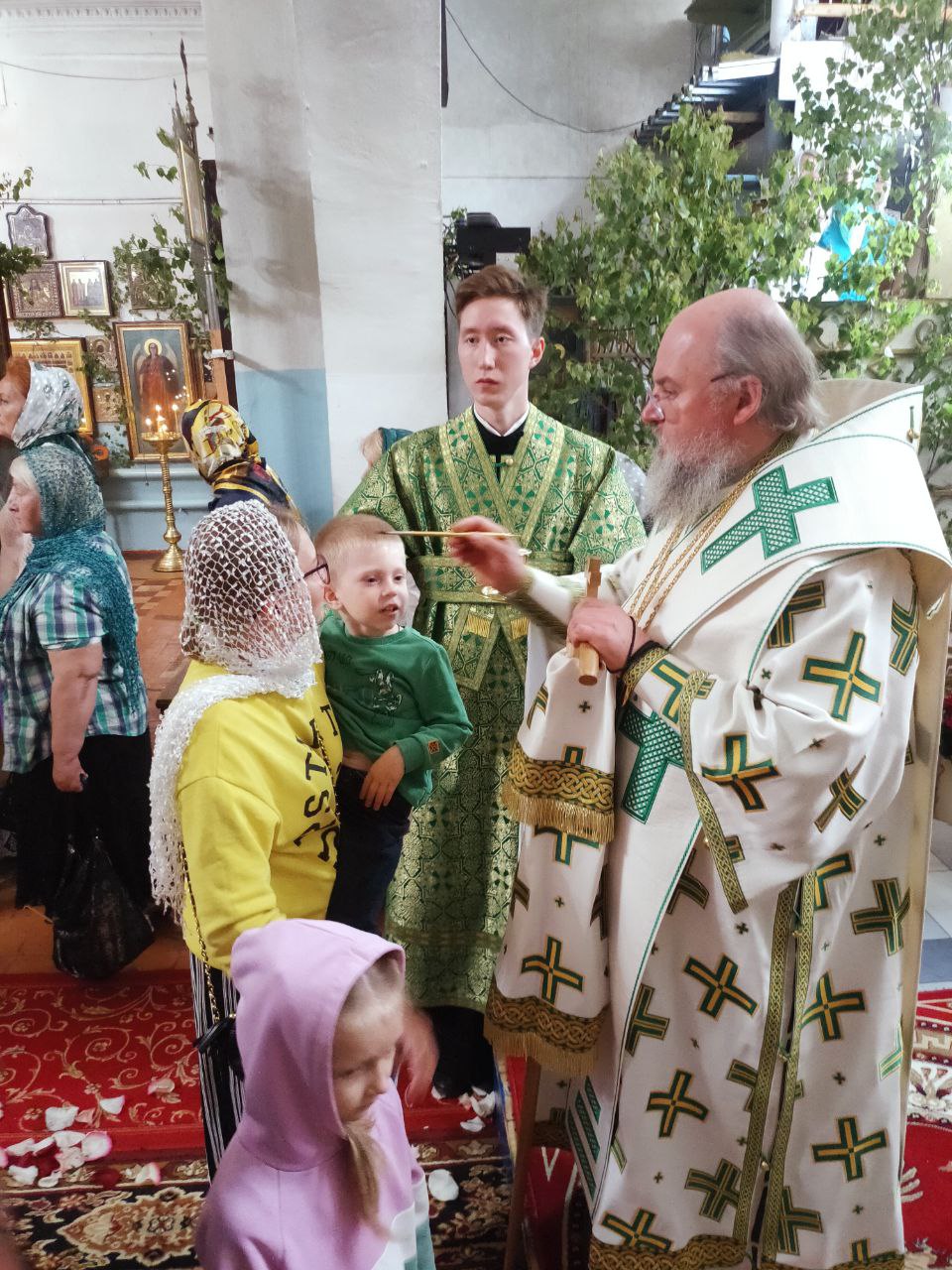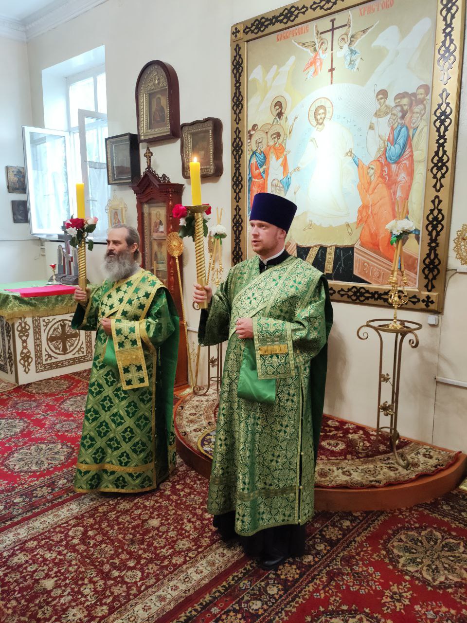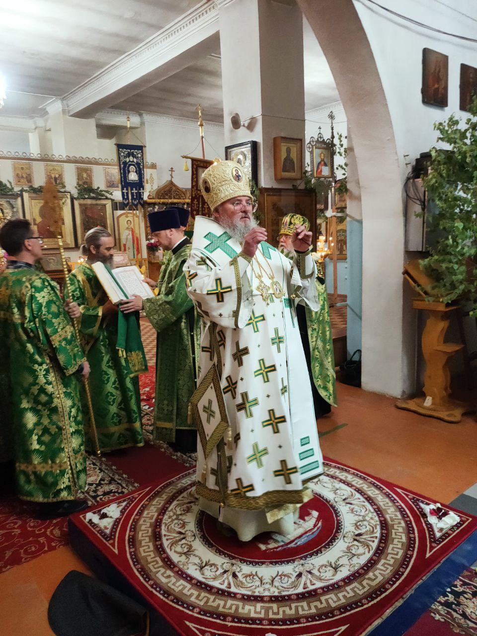 Преосвященному владыке сослужили: благочинный округа, настоятель храма, духовник епархии протоиерей Алексий Жиганов, протоиерей Антоний Хатунцев, иерей Алексий Сначев, иерей Георгий Краснов, диакон Евгений Ковригин и диакон Андрей Соколов.