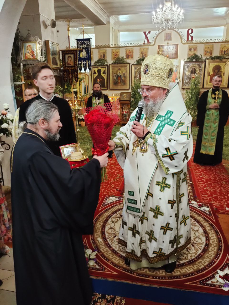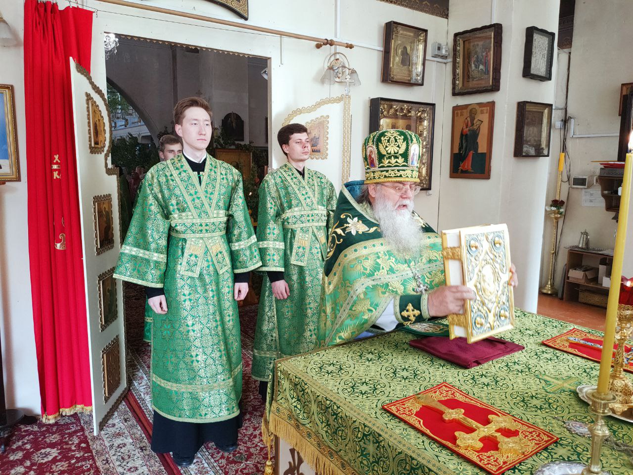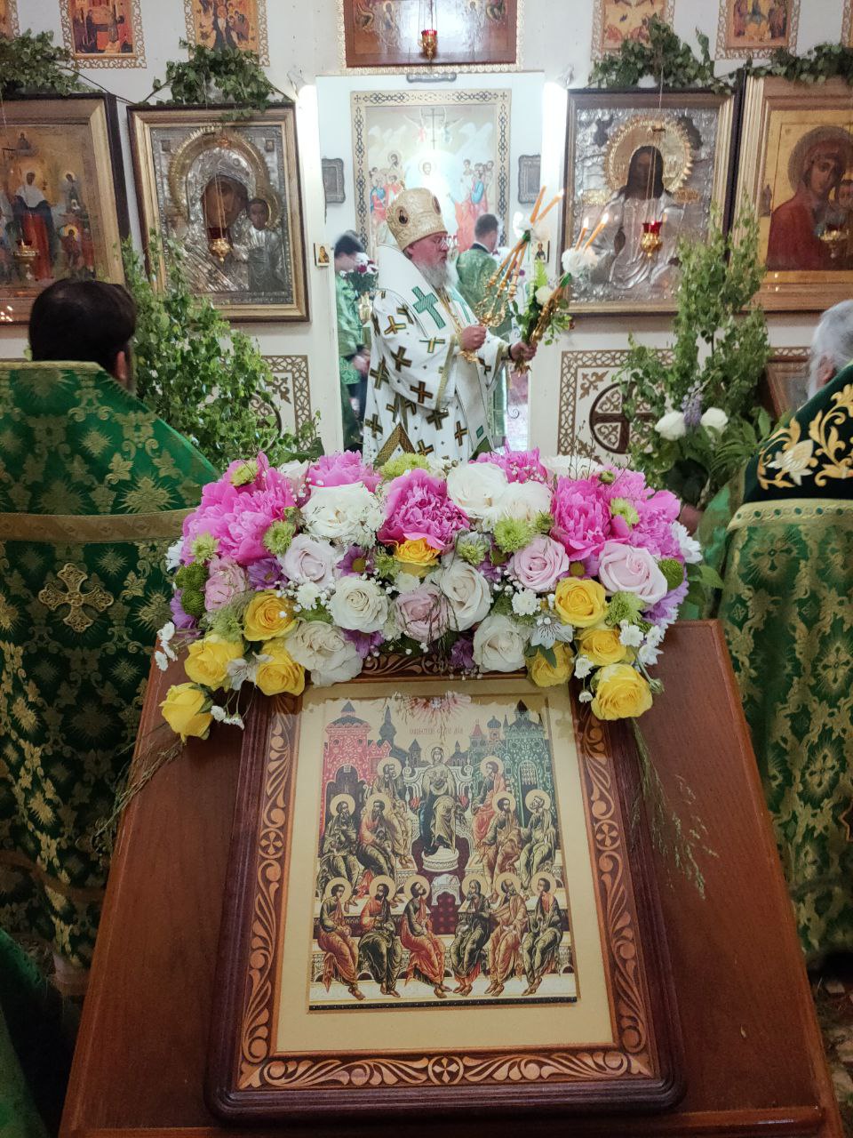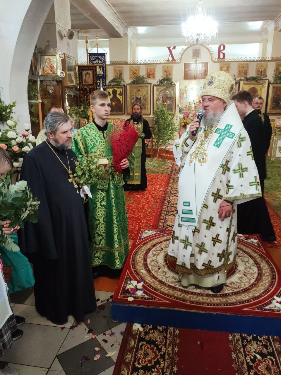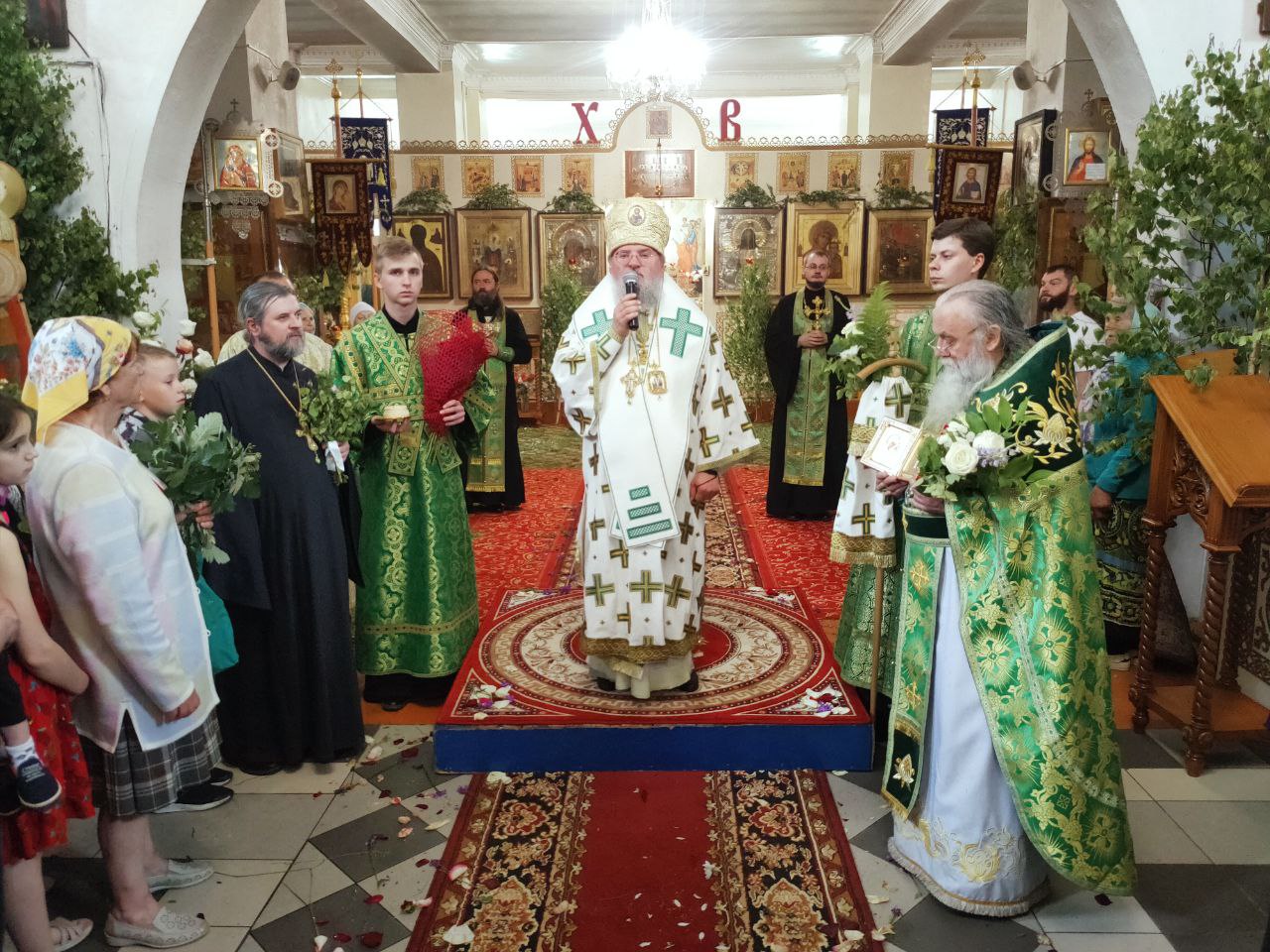 В завершение богослужения владыка Никита поприветствовал паству с великим двунадесятым праздником Пятидесятницы и произнес проповедь.