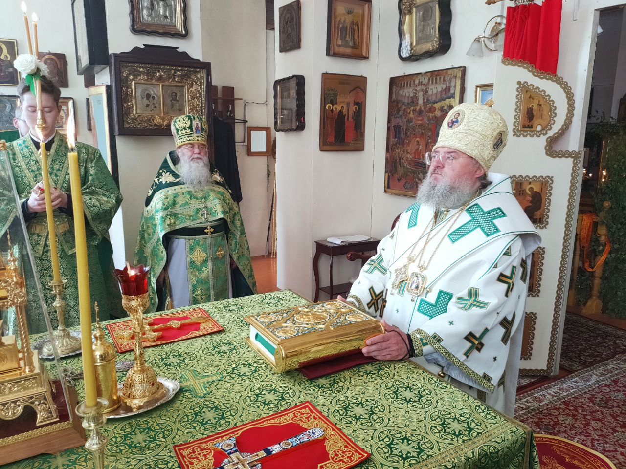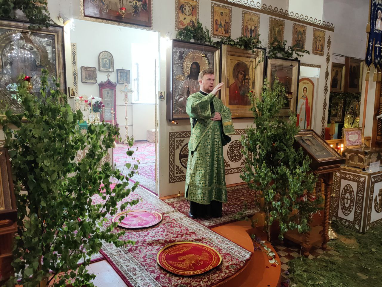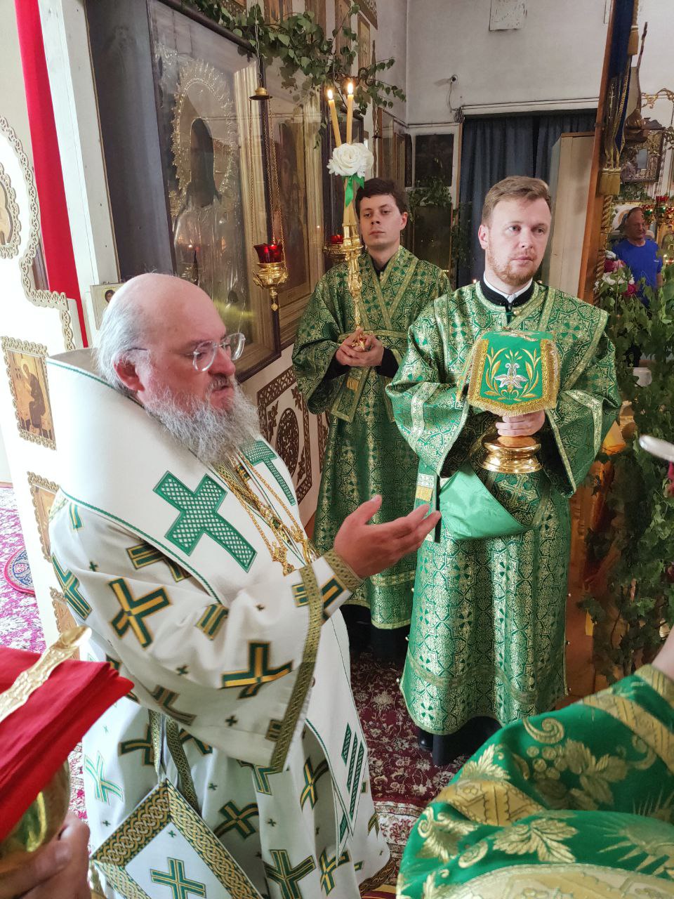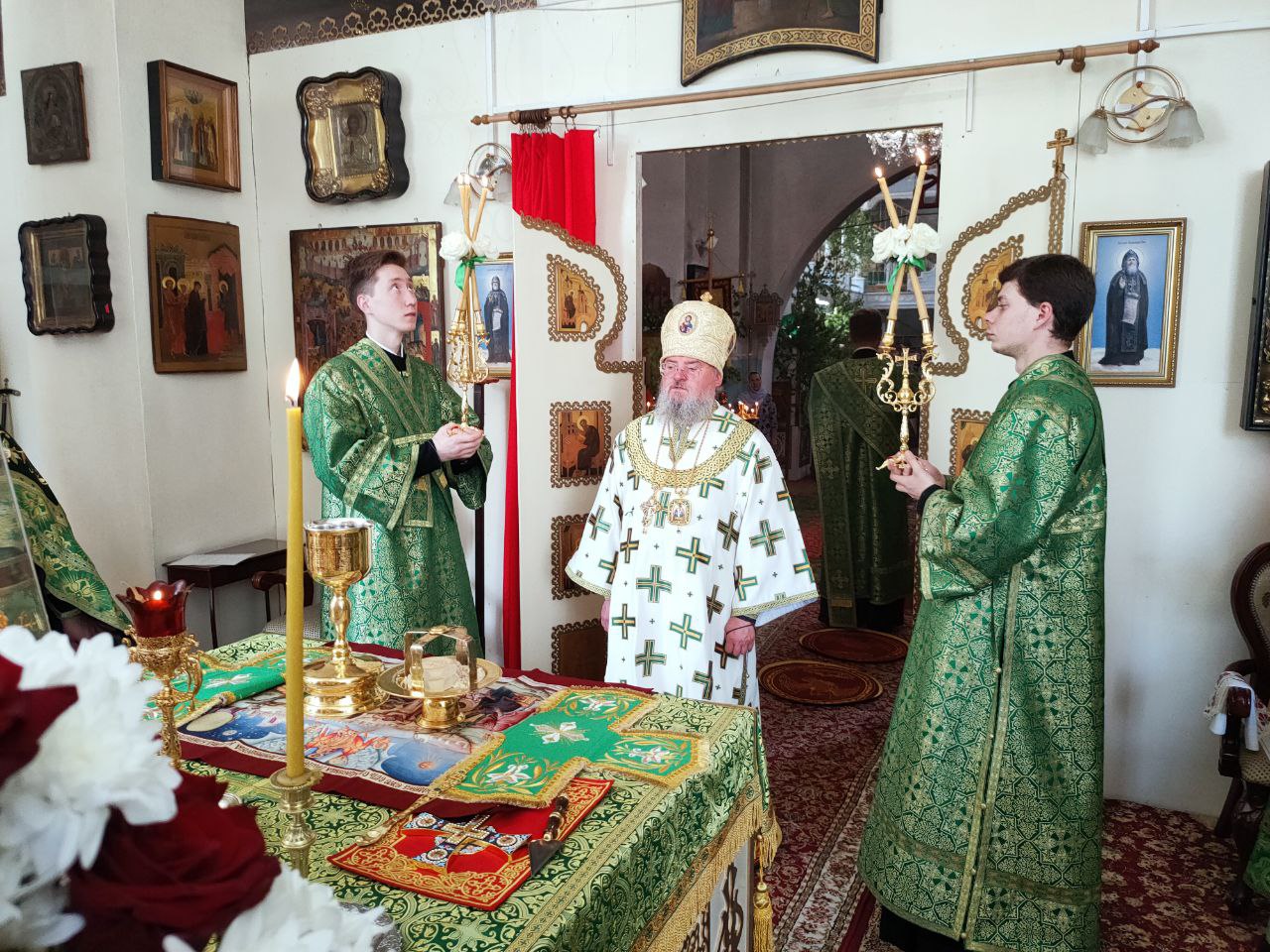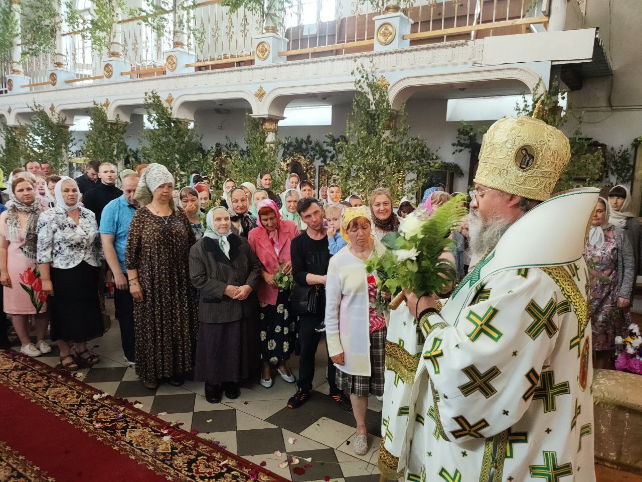 В завершение богослужения владыка Никита поприветствовал паству с великим двунадесятым праздником Пятидесятницы и произнес проповедь.
