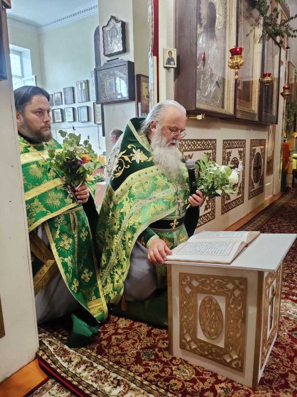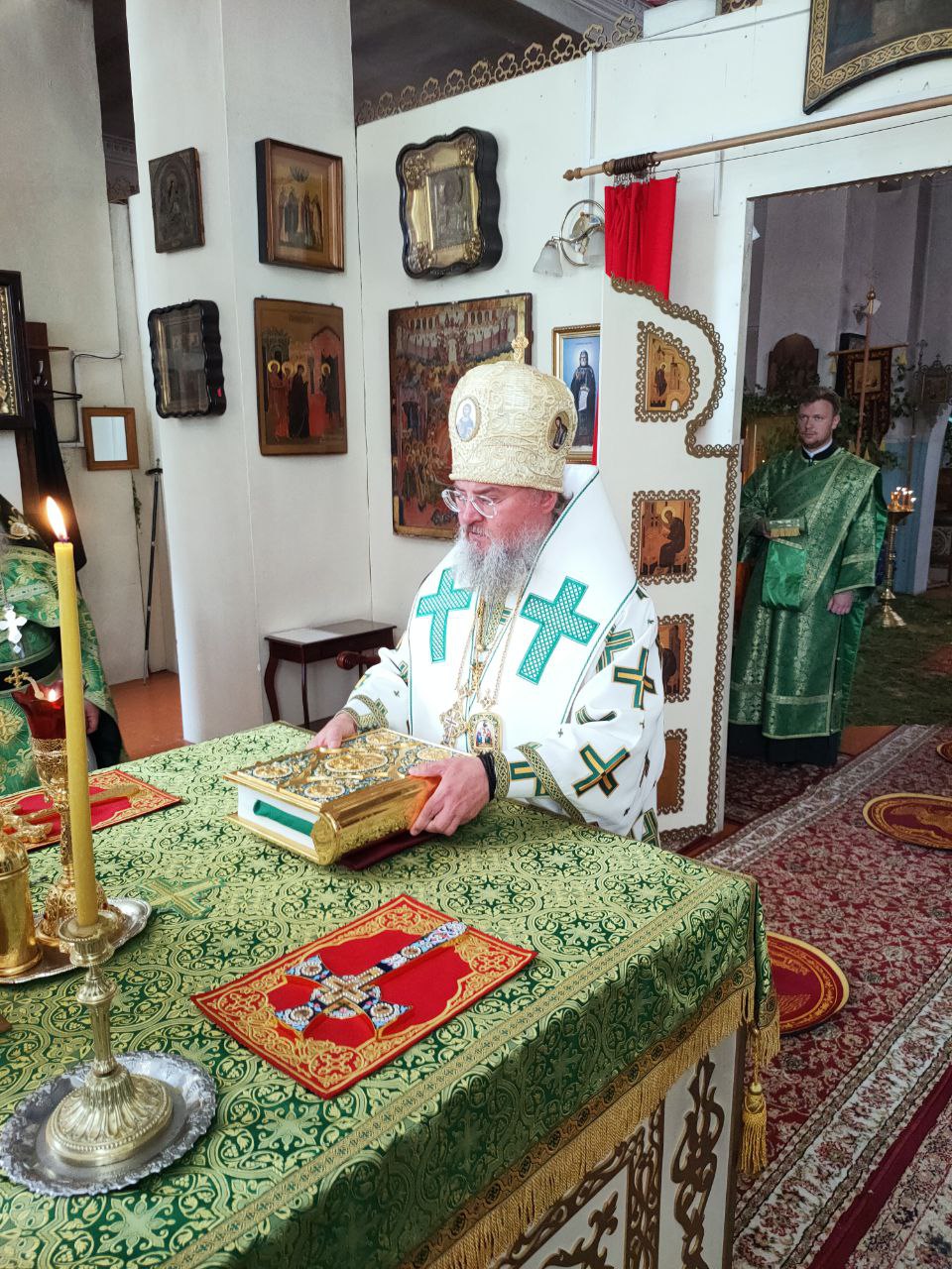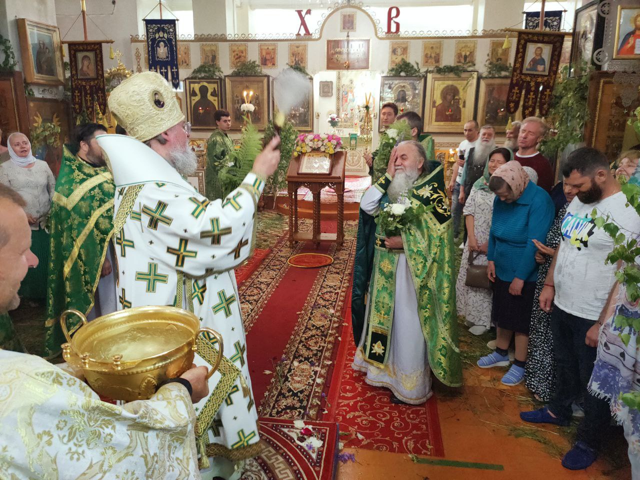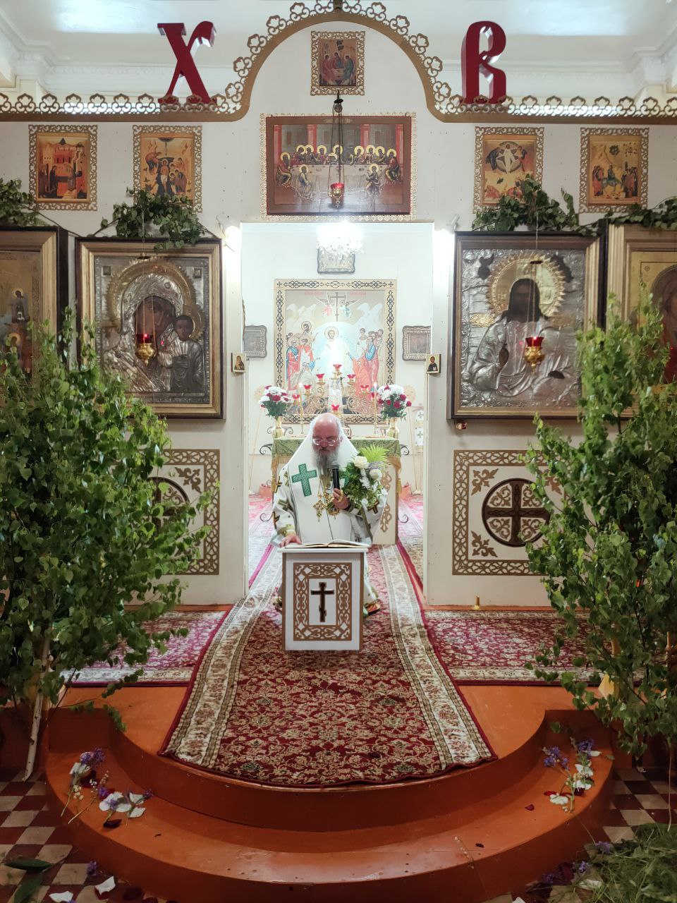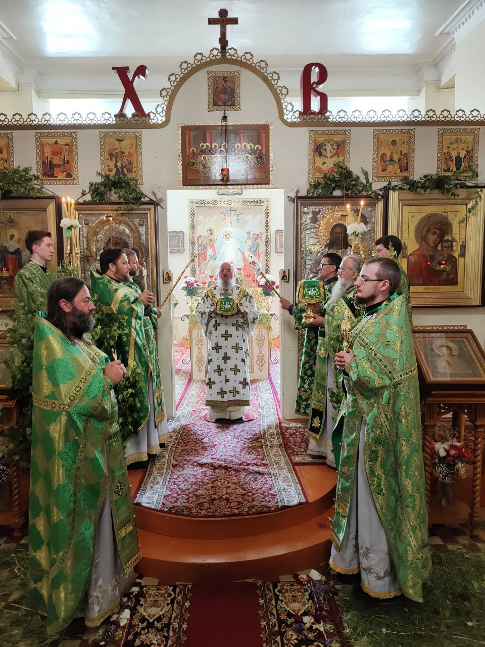 В завершение богослужения владыка Никита поприветствовал паству с великим двунадесятым праздником Пятидесятницы и произнес проповедь.