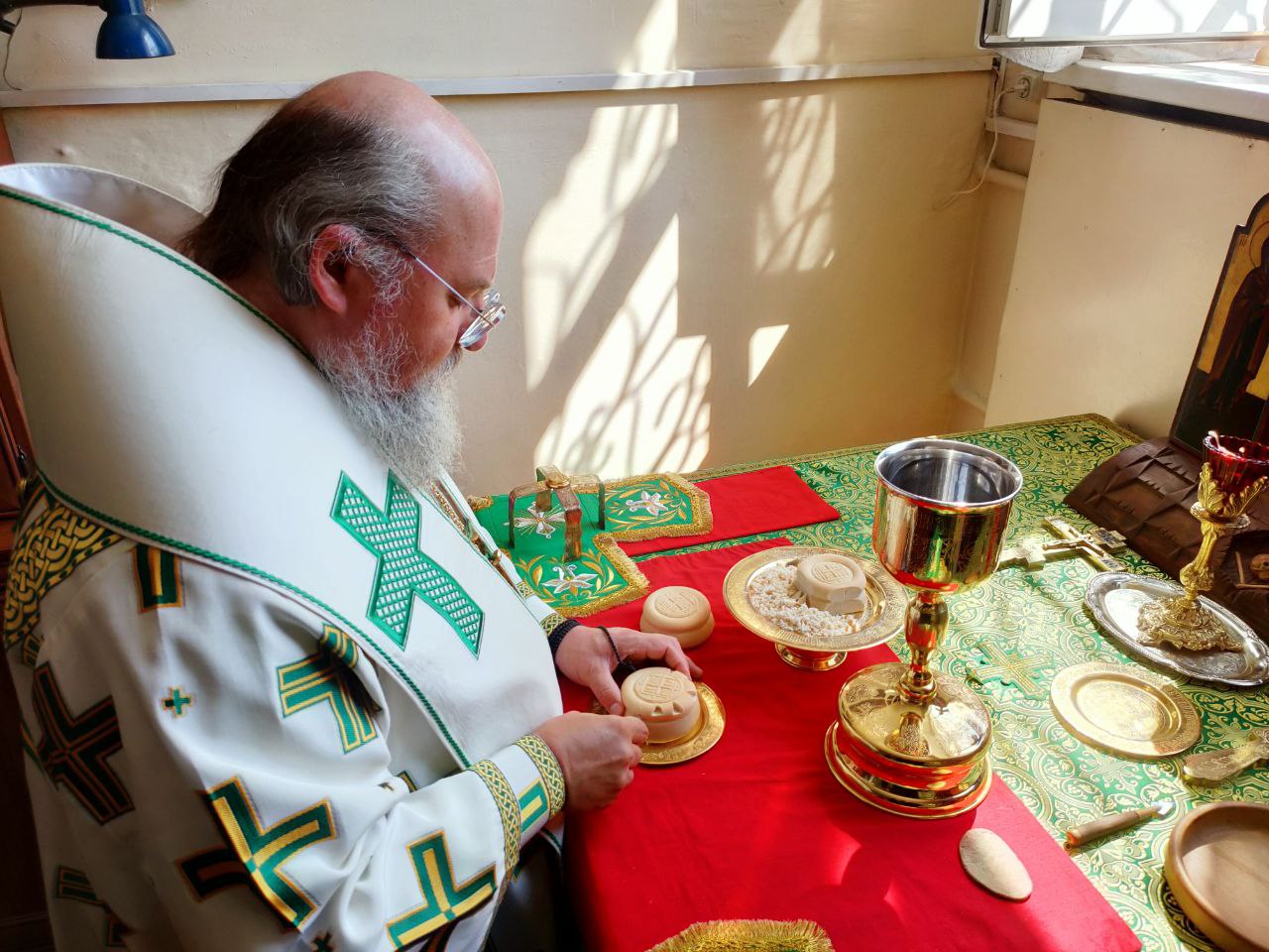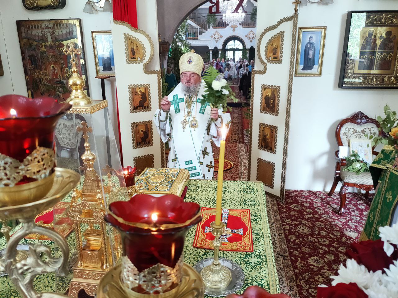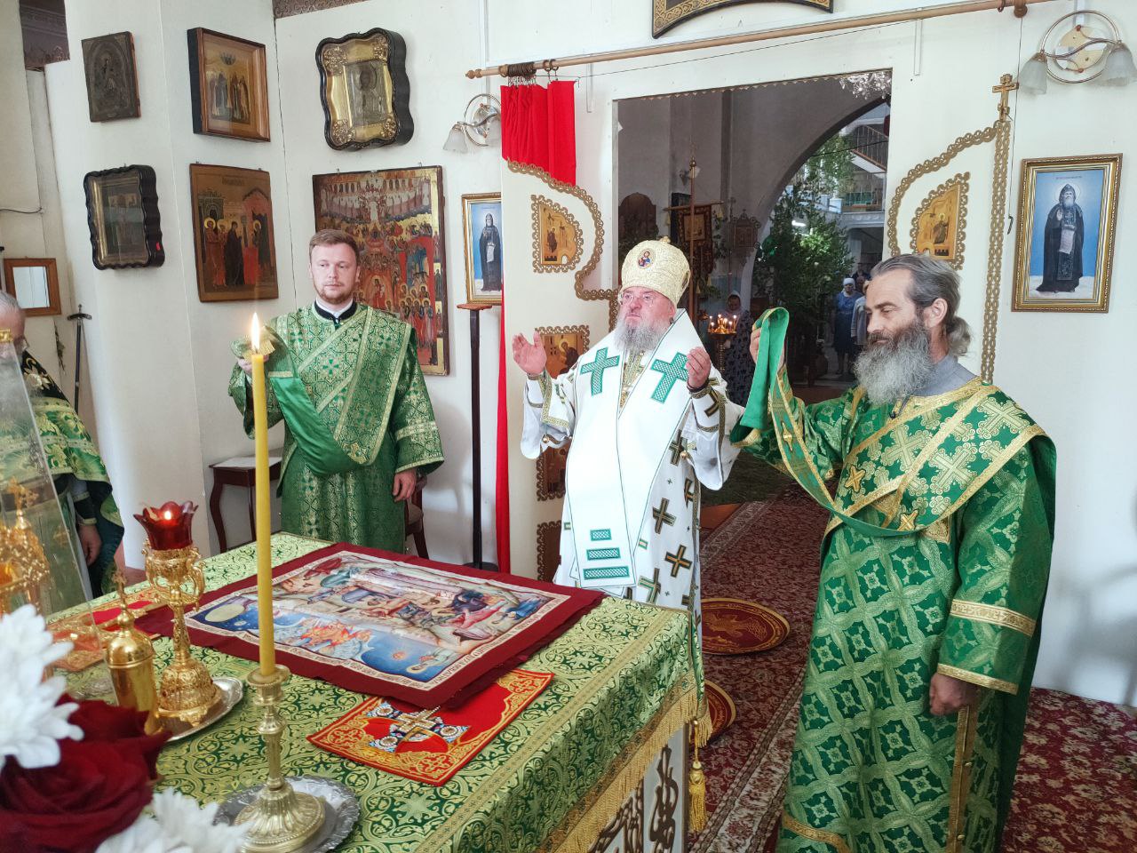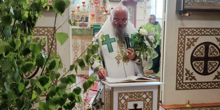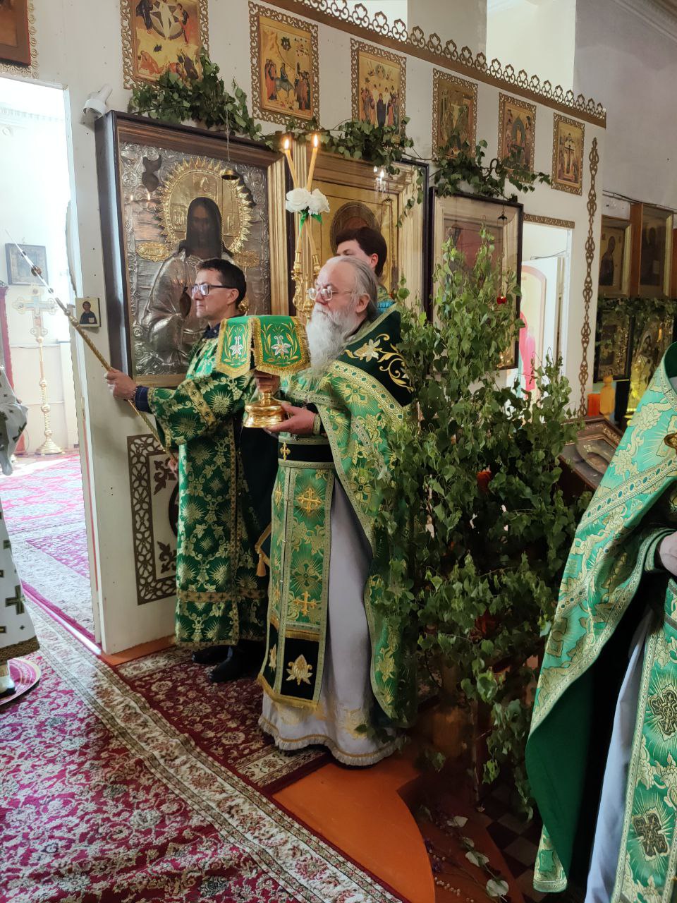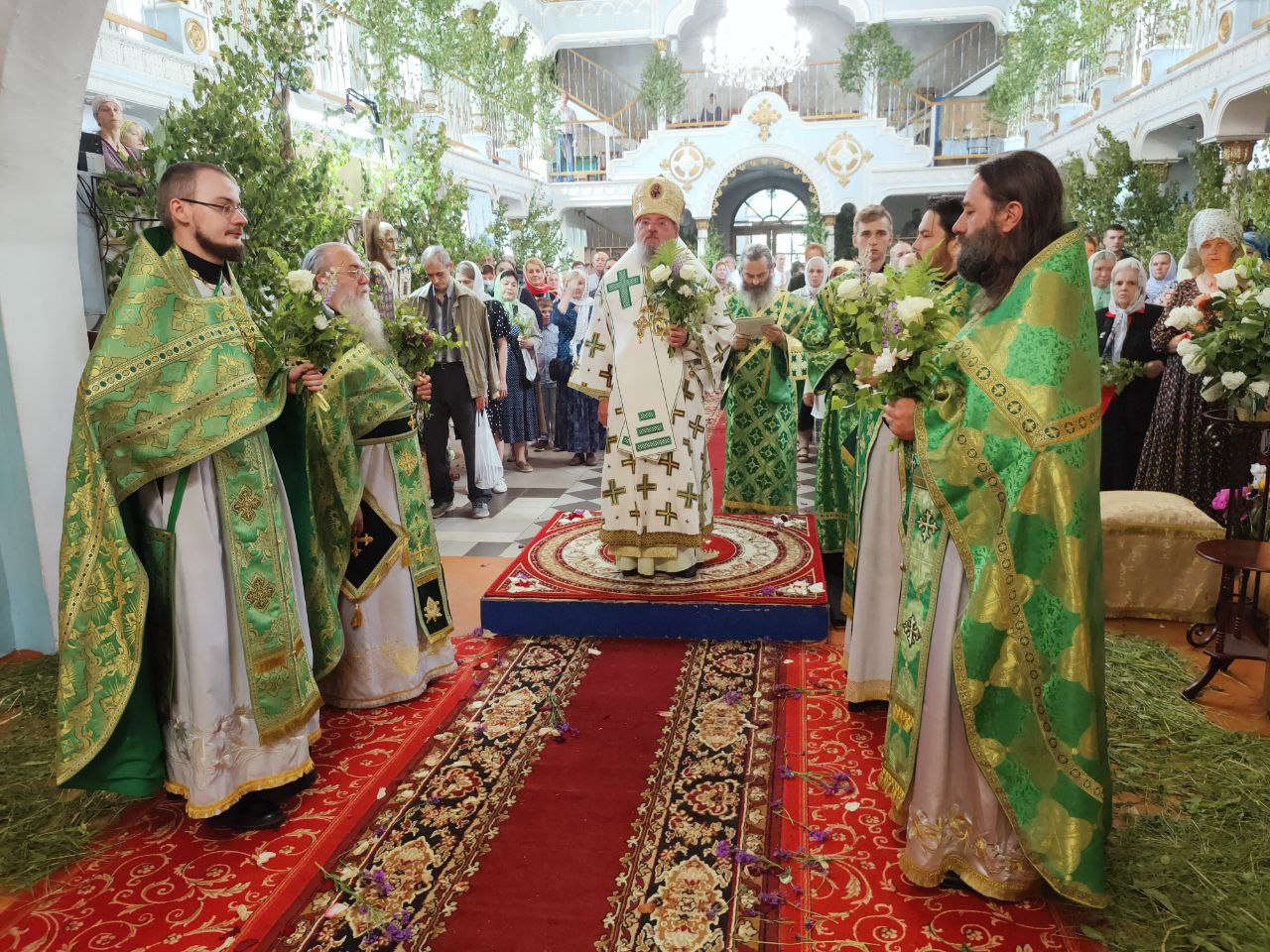 В завершение богослужения владыка Никита поприветствовал паству с великим двунадесятым праздником Пятидесятницы и произнес проповедь.
