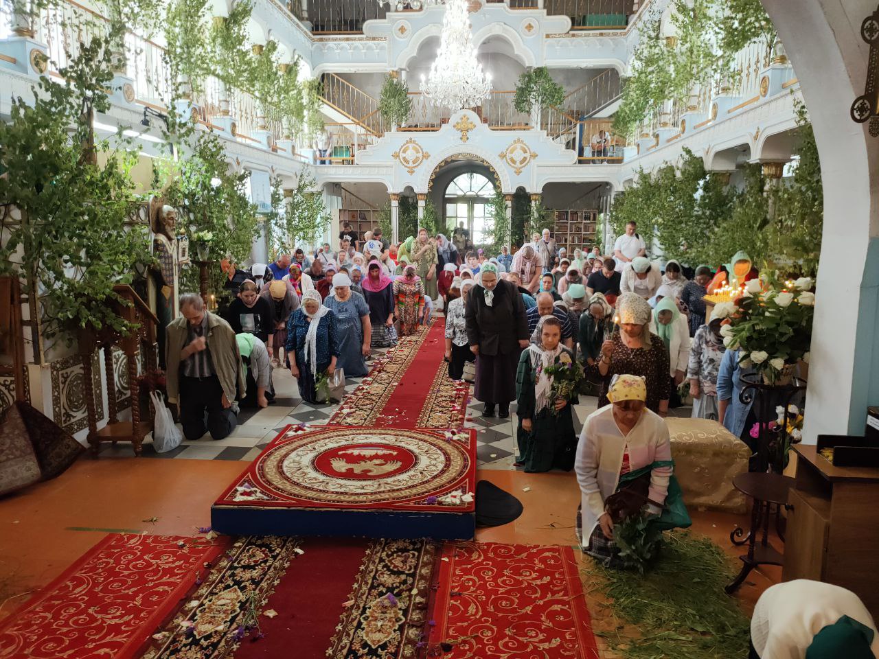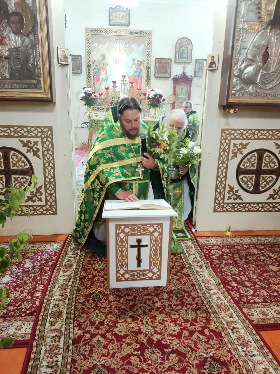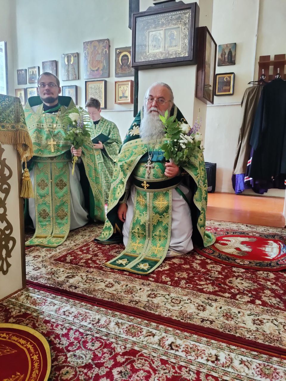 По отпусте литургии была совершена праздничная великая вечерня с чтением коленопреклонных молитв.