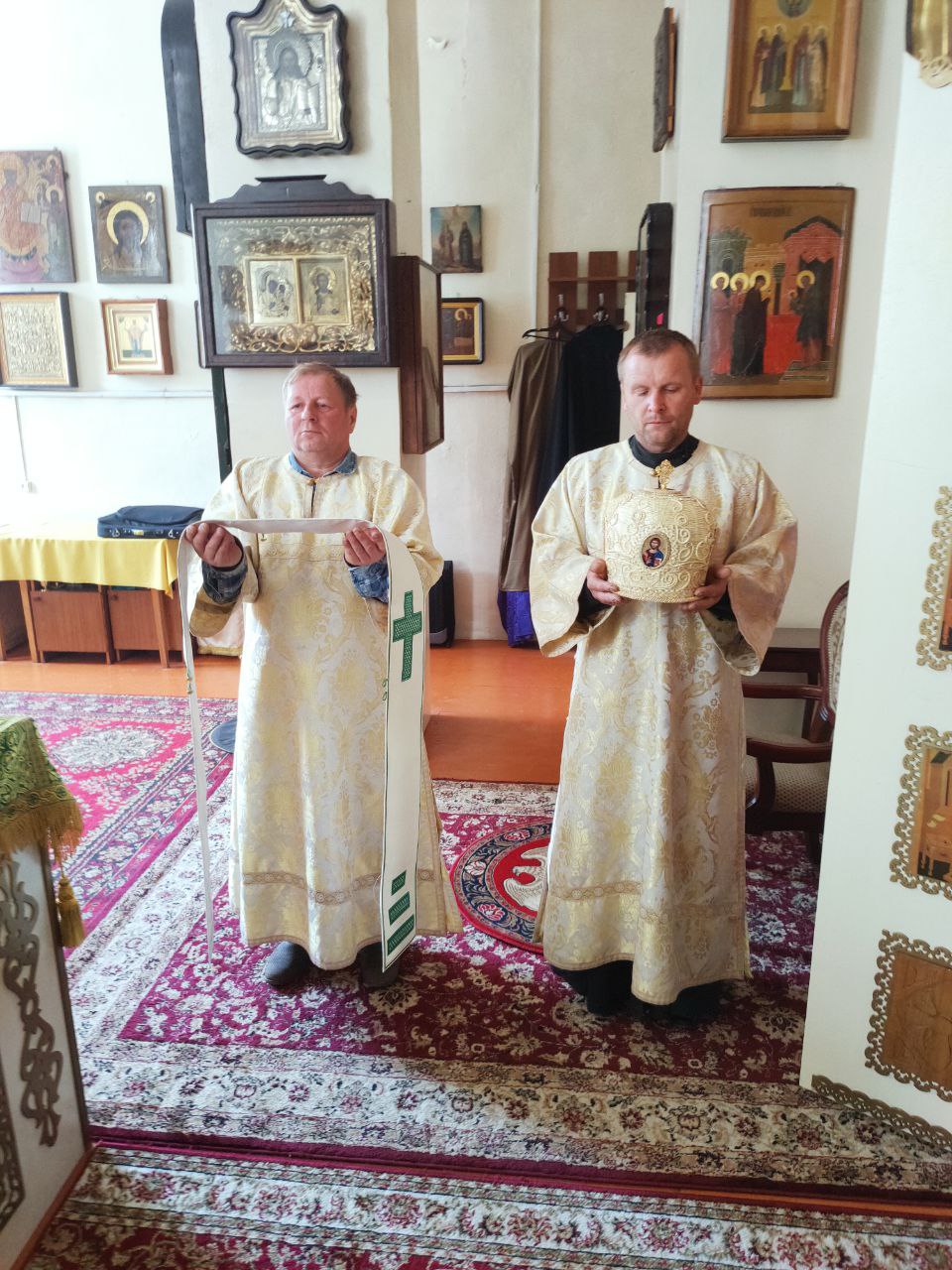 Преосвященному владыке сослужили: благочинный округа, настоятель храма, духовник епархии протоиерей Алексий Жиганов, протоиерей Антоний Хатунцев, иерей Алексий Сначев, иерей Георгий Краснов, диакон Евгений Ковригин и диакон Андрей Соколов.