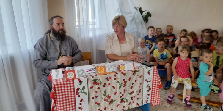 20 июня в Ульяновском детском садике «Солнышко» прошло спортивное мероприятие, на котором присутствовал настоятель храма Воскресения Христова протоиерей Максим Садовников.