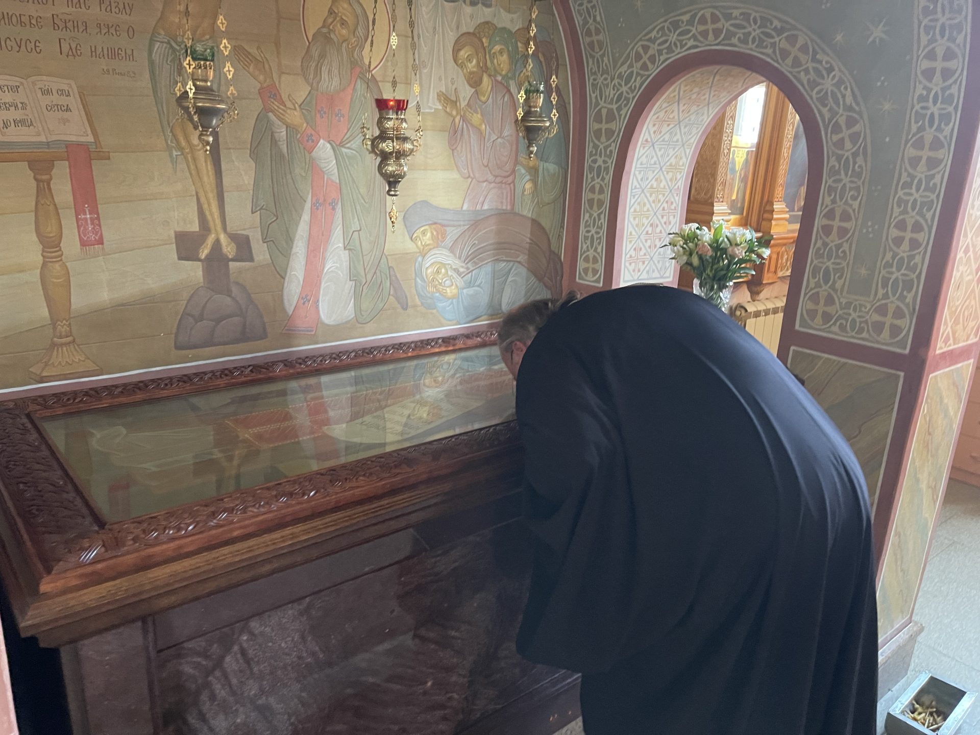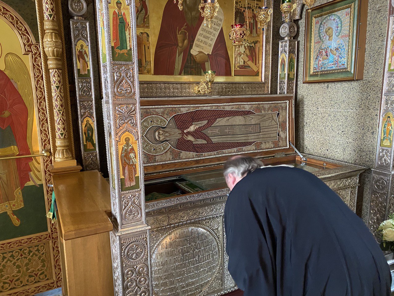 Архиерей также посетил Введенский собор, в котором находится рака преподобного старца Амвросия, Владимирский и Казанский храмы, где почивают мощи преподобных старцев Оптинских. В часовне убиенных иеромонаха Василия, инока Ферапонта и инока Трофима владыка приложился к их надгробиям, совершив заупокойную молитву.
