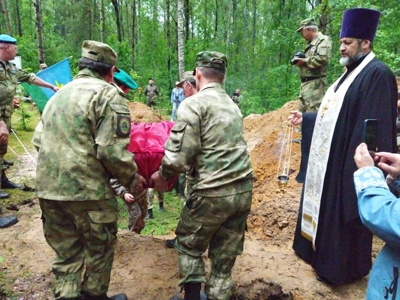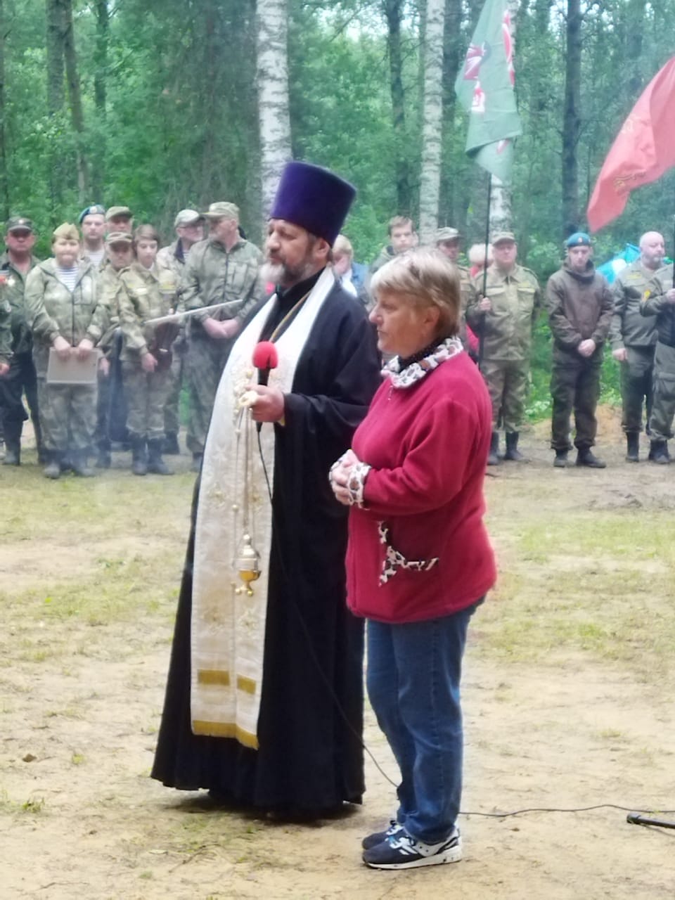 Церемония захоронения началась с литии в память о погибших в годы Великой Отечественной войны 1941-1945 годов, которую совершил благочинный Думиничского округа, настоятель храма в честь святых бессребреников Космы и Дамиана протоиерей Иоанн Староста.