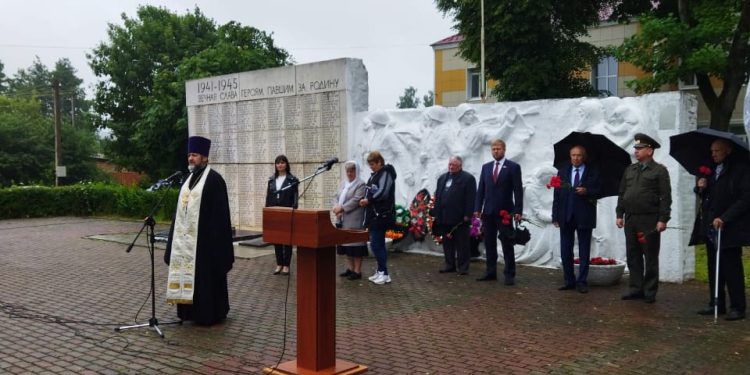 В День памяти и скорби на Братском захоронении поселка Думиничи состоялся митинг. Благочинный округа протоиерей Иоанн с певчими храма в честь бессребреников Космы и Дамиана совершили заупокойную литию. Торжественная обстановке и слова молитвы очень глубоко затронули струны души каждого присутствующего. Важно отметить, что взрослые и дети пришедшие на мероприятие со вниманием слушали молитву. Первый заместитель председателя законодательного собрания Калужской области Виктор Сергеевич Бабурин и Глава администрации МР «Думиничский район» Сергей Геннадьевич Булыгин в своих выступлениях говорили о подвигах жителей области в годы ВОВ и о важности патриотического воспитания сегодня. По окончании мероприятия были возложены живые цветы к мемориалу погибших воинов.