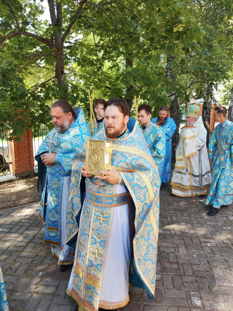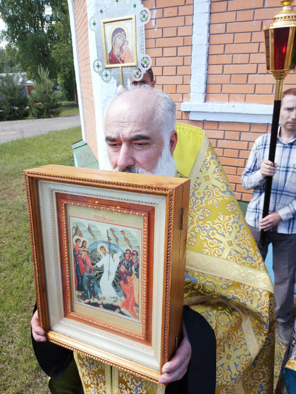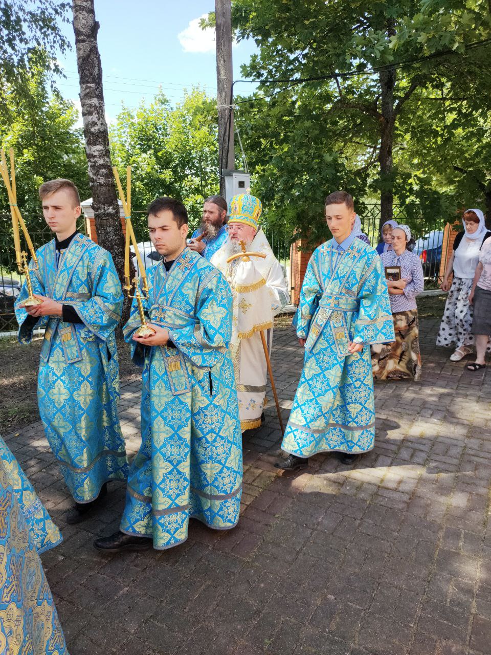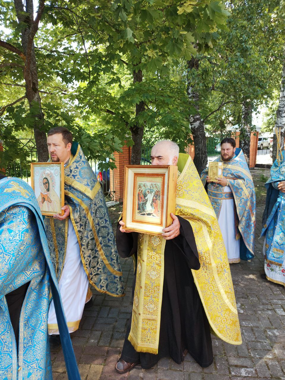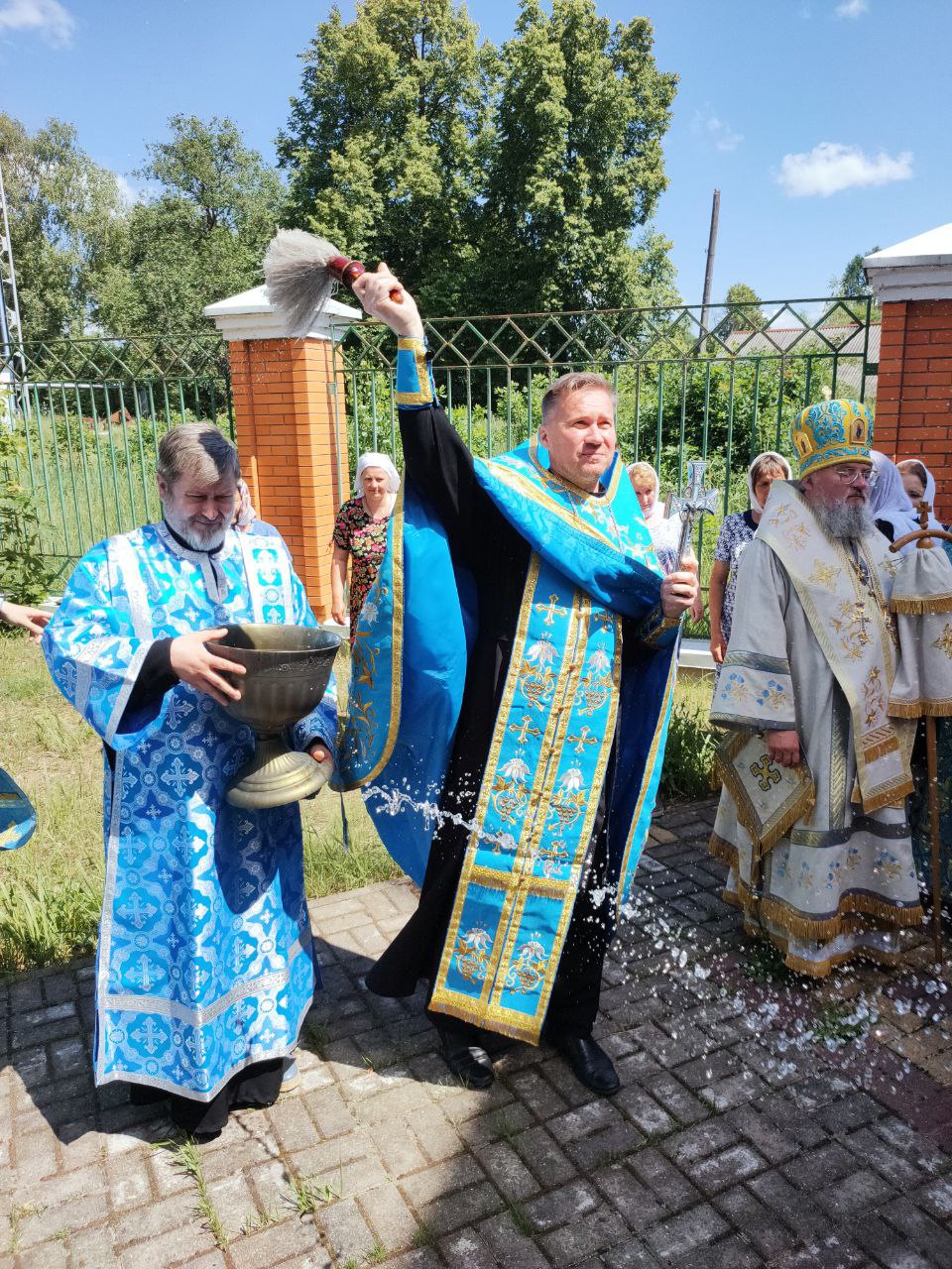 По отпусте литургии был совершен праздничный молебен и крестный ход вокруг храма, к которому присоединились священнослужители всех храмов благочиннического округа во главе с благочинным протоиереем Александром Карповым настоятелем храма Успения Пресвятой Богородицы в селе Хвастовичи.