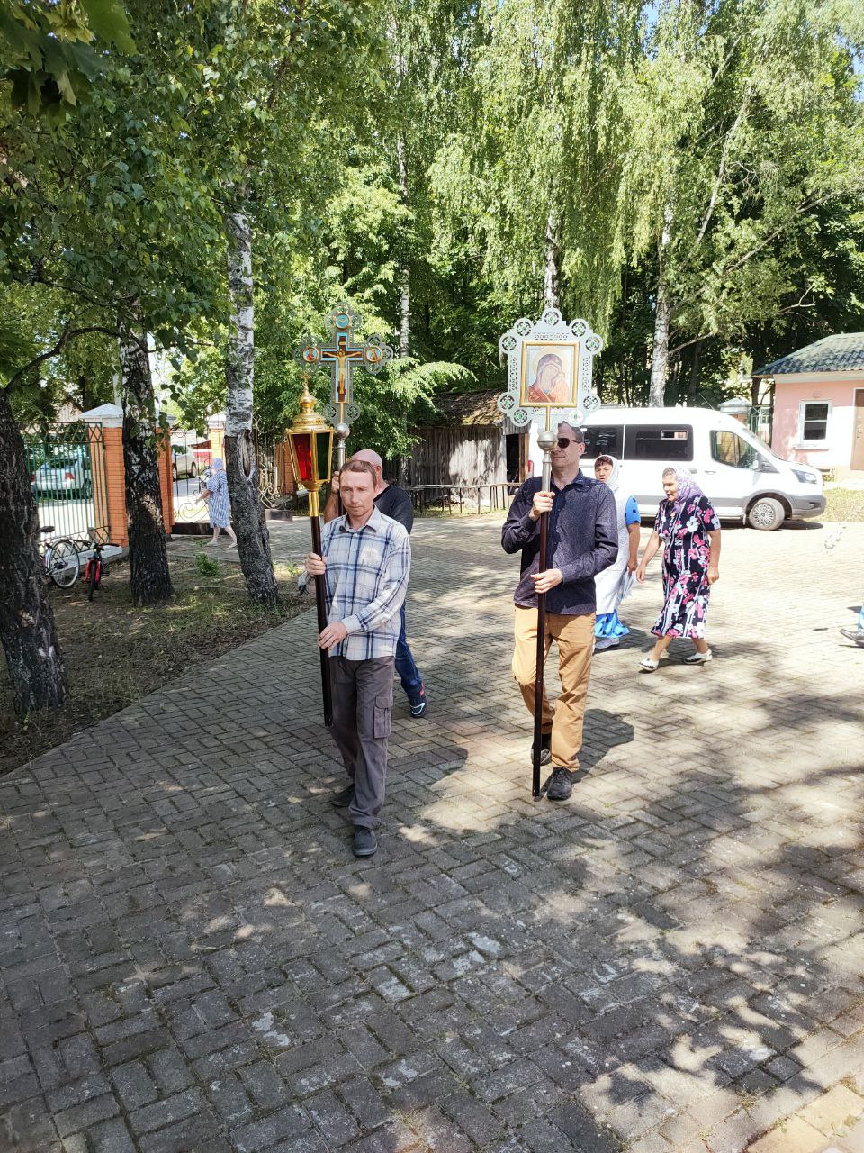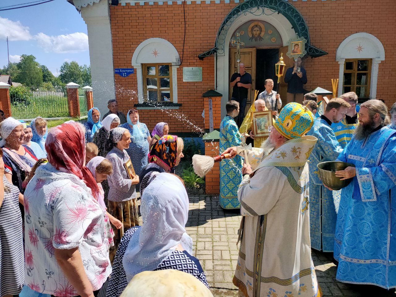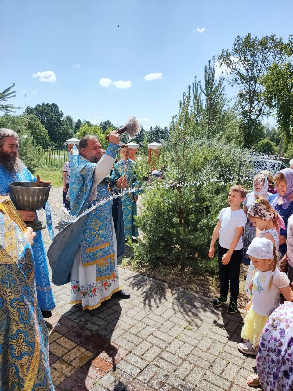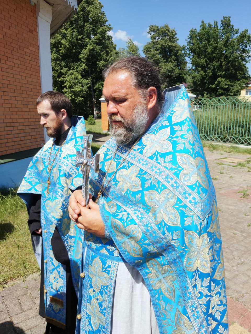 По отпусте литургии был совершен праздничный молебен и крестный ход вокруг храма, к которому присоединились священнослужители всех храмов благочиннического округа во главе с благочинным протоиереем Александром Карповым настоятелем храма Успения Пресвятой Богородицы в селе Хвастовичи.