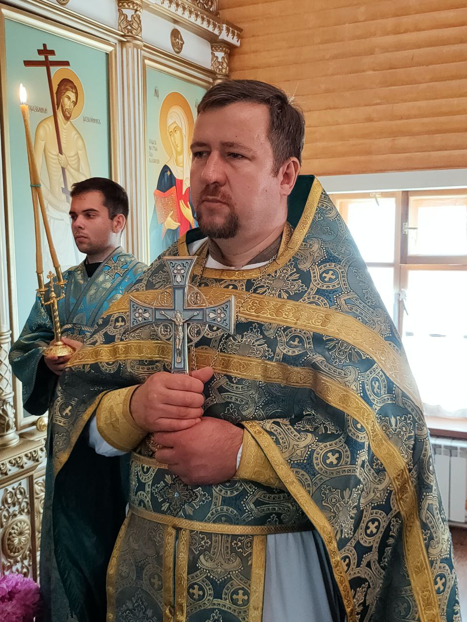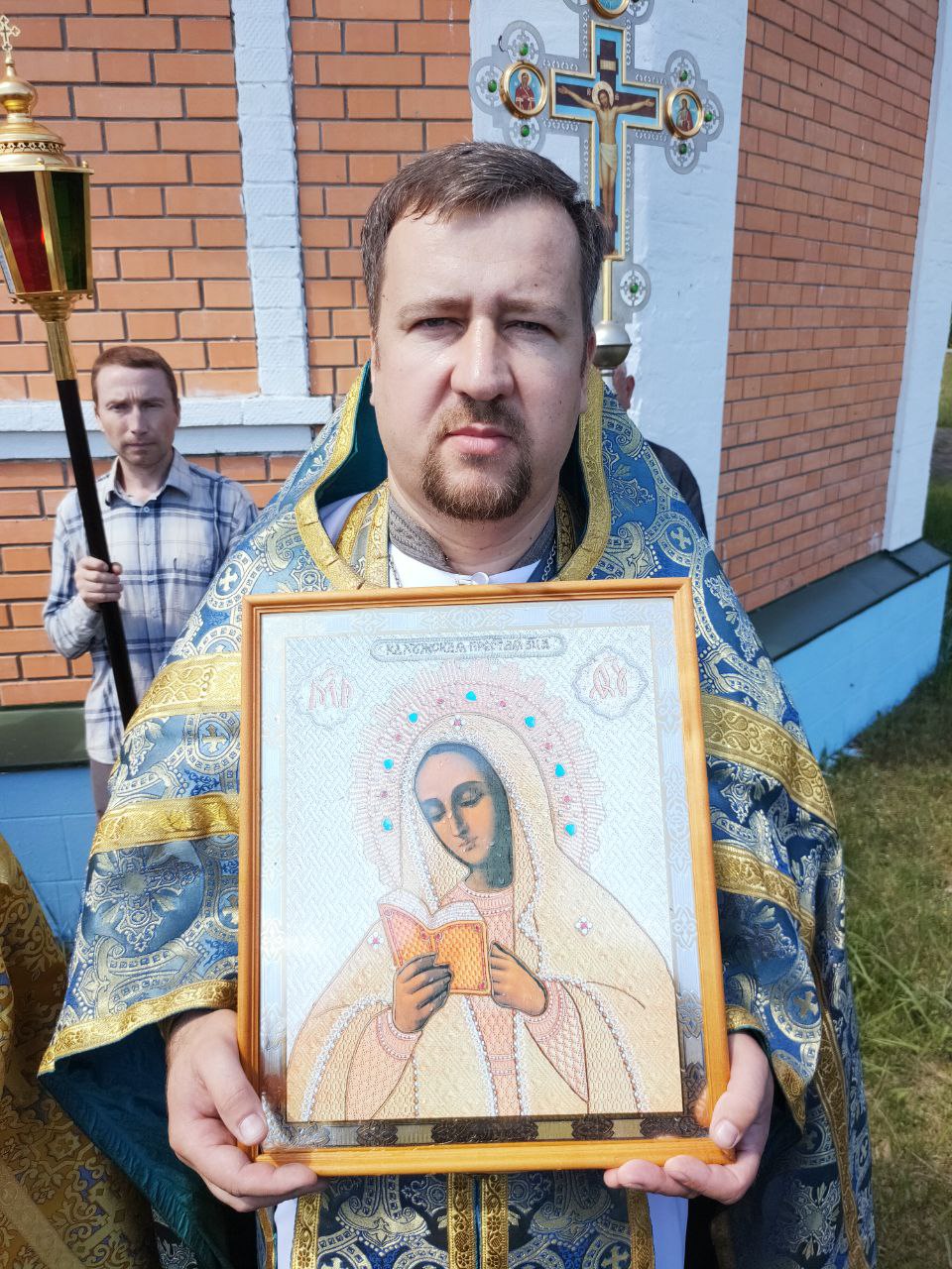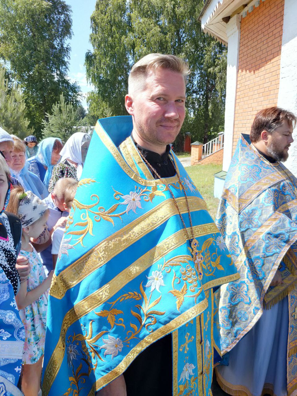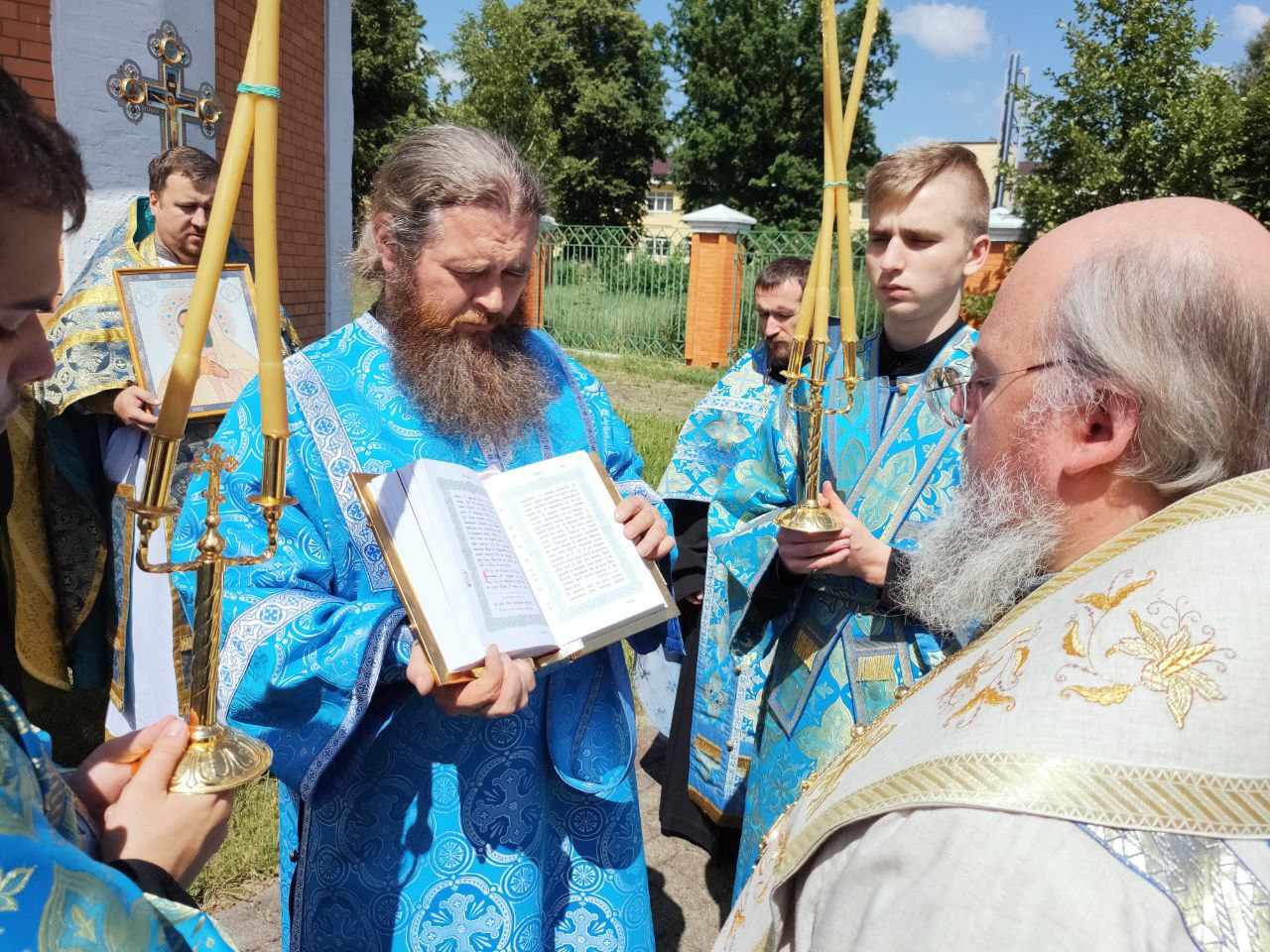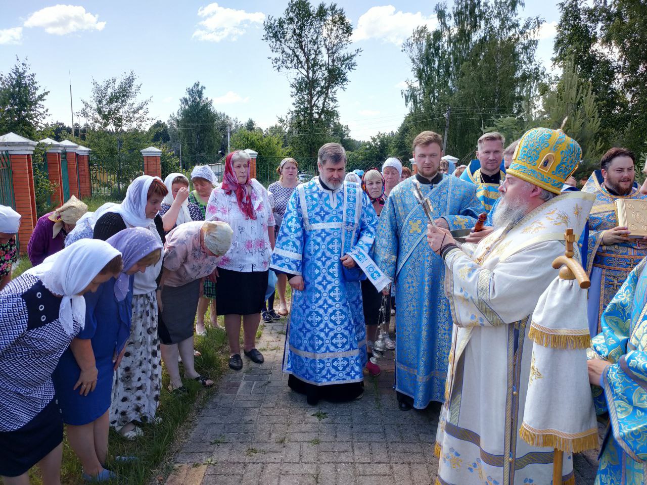 По отпусте литургии был совершен праздничный молебен и крестный ход вокруг храма, к которому присоединились священнослужители всех храмов благочиннического округа во главе с благочинным протоиереем Александром Карповым настоятелем храма Успения Пресвятой Богородицы в селе Хвастовичи.