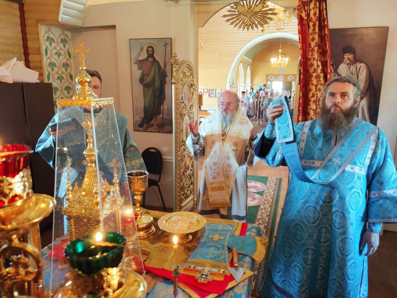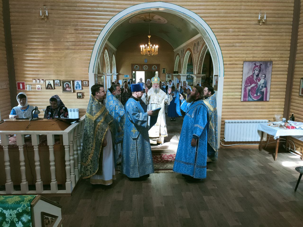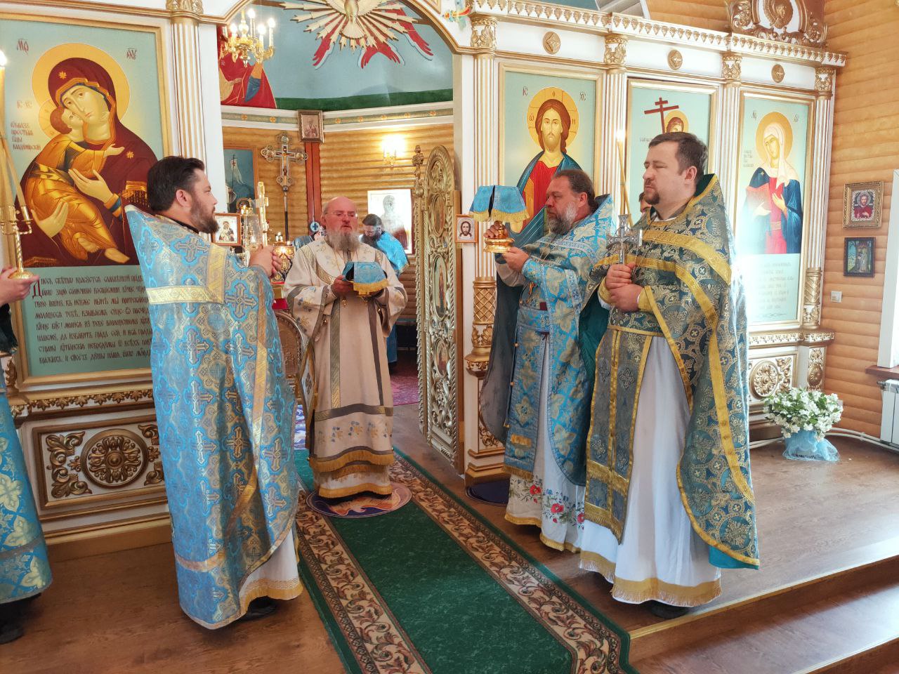 Архипастырю сослужили: протоиерей Григорий Коновалов, протоиерей Антоний Хатунцев, иерей Павел Мещеряков – настоятель храма, диакон Евгений Ковригин и диакон Алексий Скрипкин.