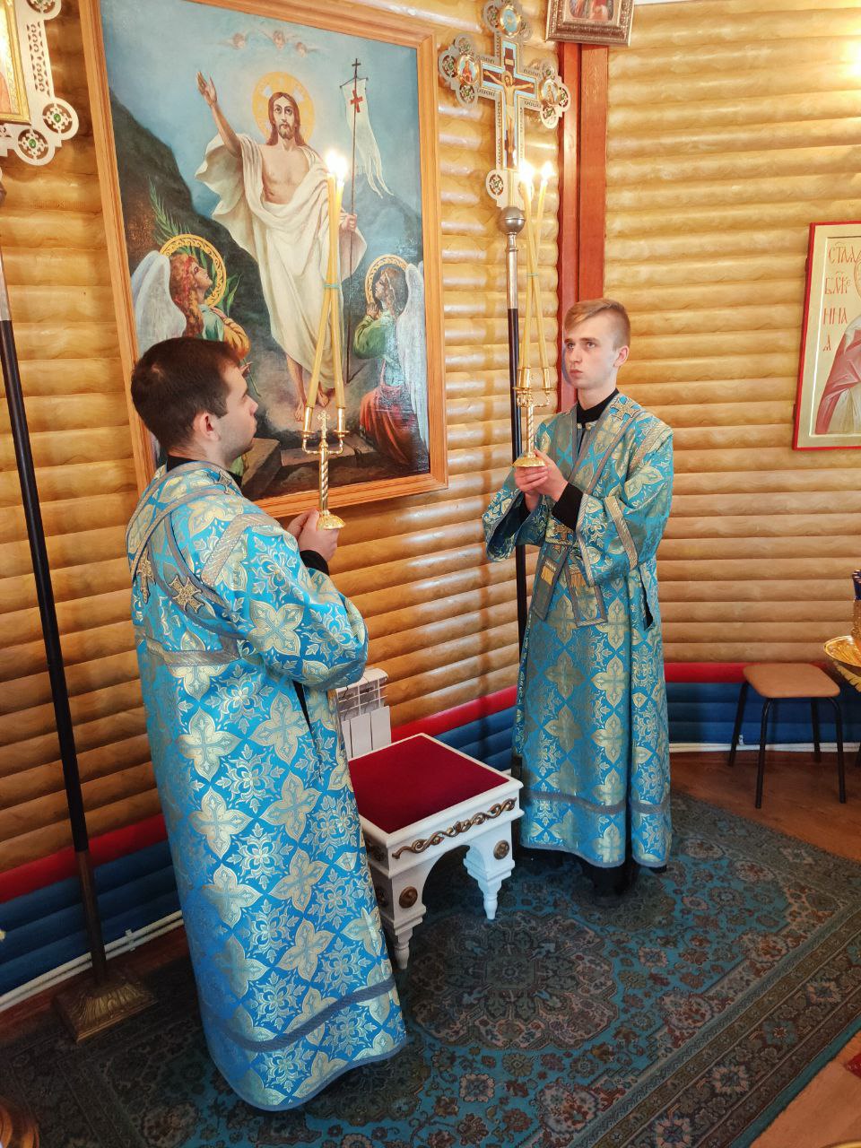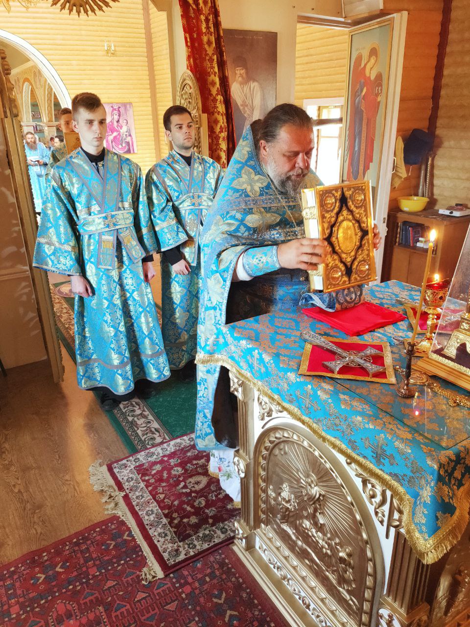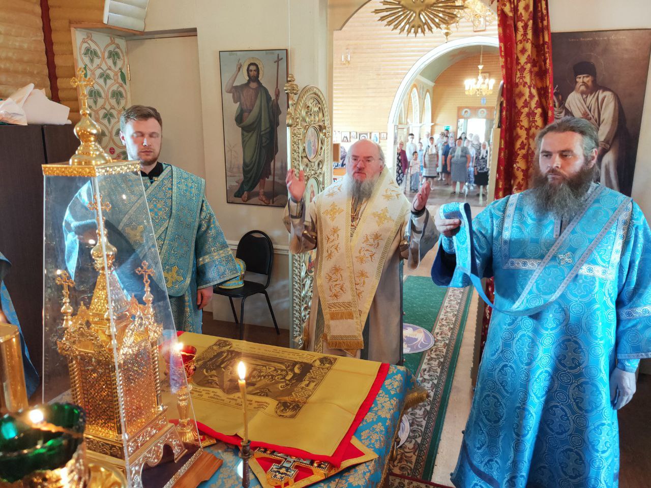 Архипастырю сослужили: протоиерей Григорий Коновалов, протоиерей Антоний Хатунцев, иерей Павел Мещеряков – настоятель храма, диакон Евгений Ковригин и диакон Алексий Скрипкин.