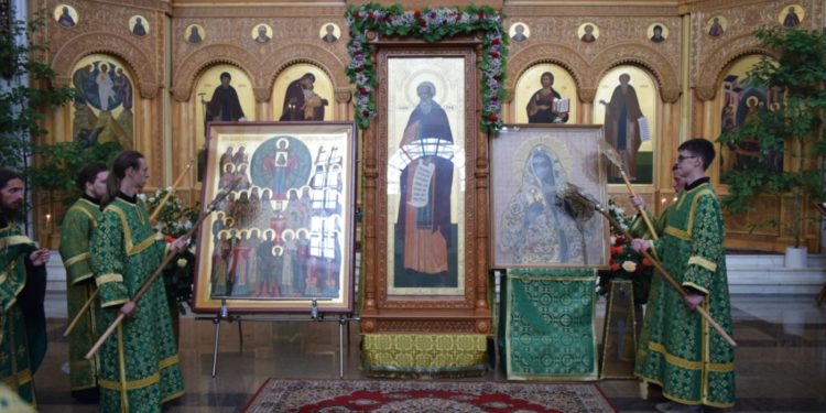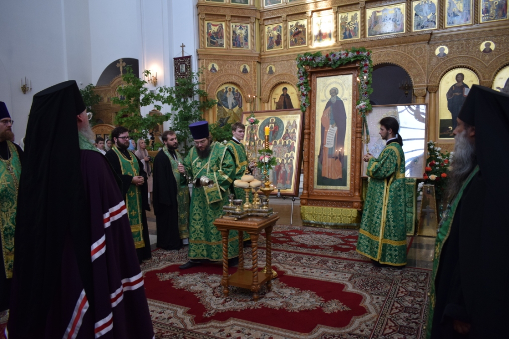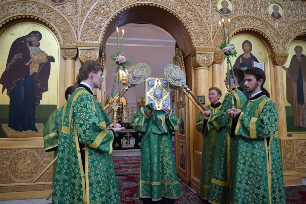 Богомольцы смогли приложиться к святыням: чудотворному образу Божией Матери «Калужская», покровителю обители преподобному Тихону Калужскому и образу «Собор святых новомучеников и исповедников земли Калужской» из Свято-Троицкого кафедрального собора города Калуги.