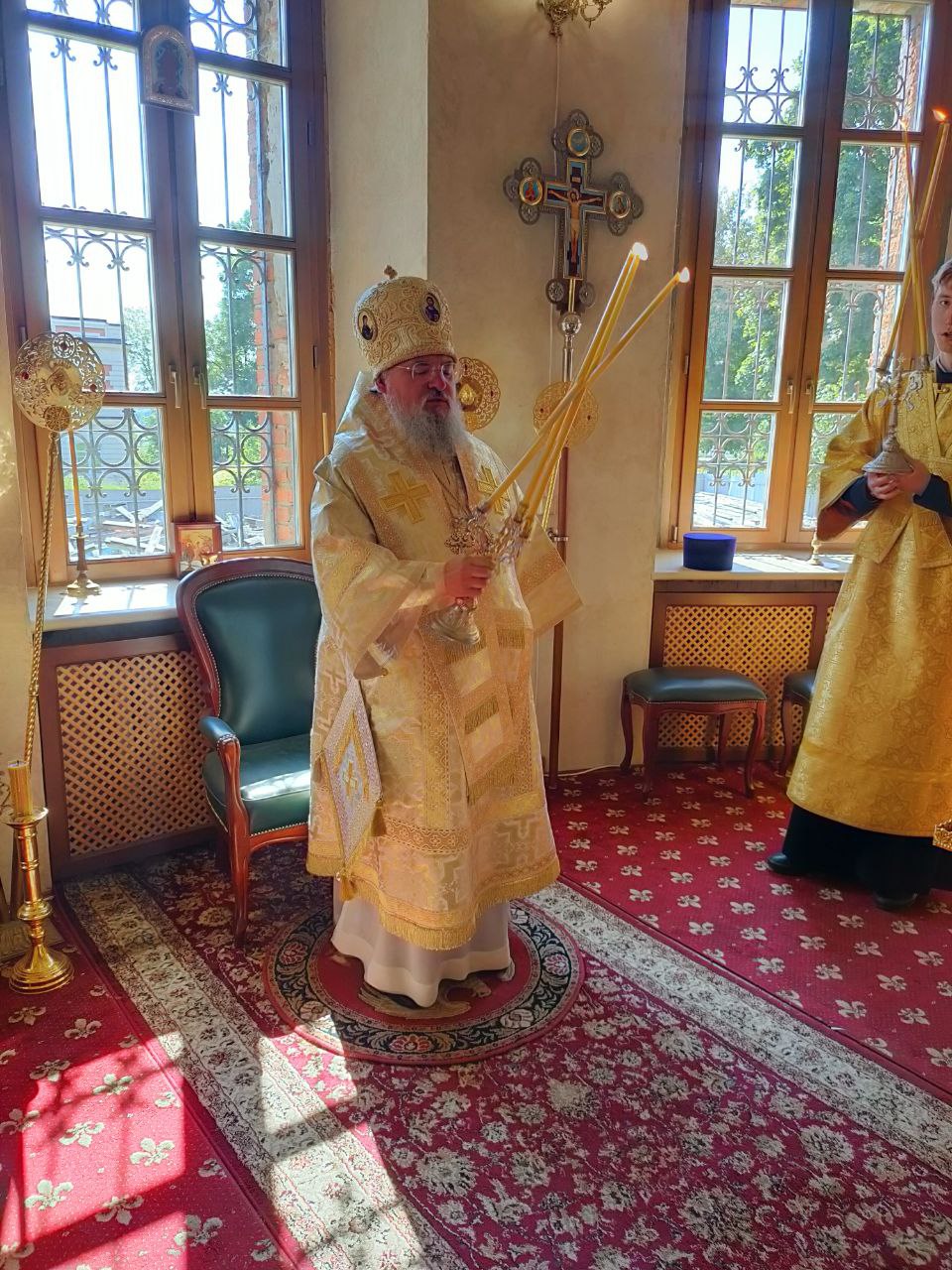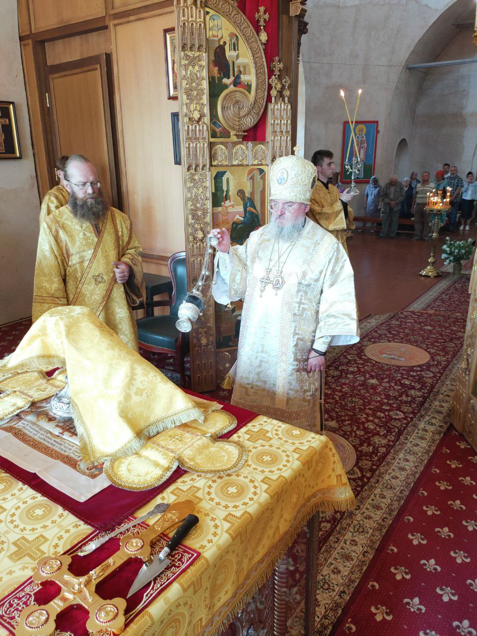 После сугубой ектении епископ Никита вознес молитву о скорейшем восстановлении мира. По благословению Святейшего Патриарха Московского и всея Руси Кирилла эта сугубая молитва совершается во всех храмах Русской Православной Церкви за каждым богослужением.