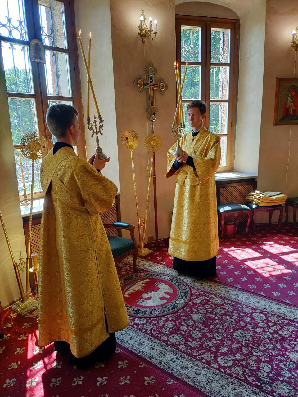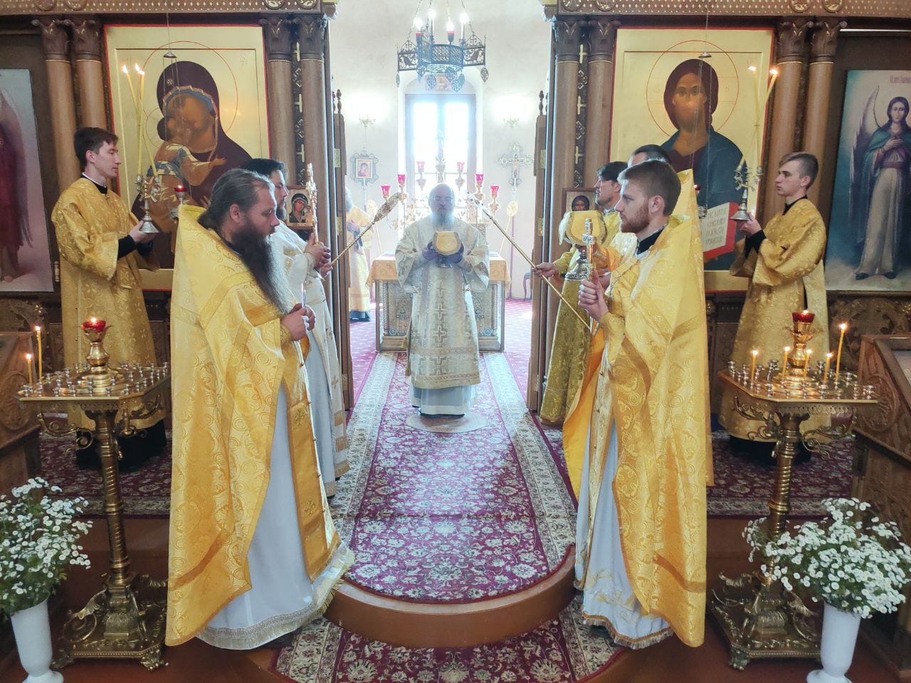 Его Преосвященству сослужили: протоиерей Антоний Хатунцев, иеромонах Паисий (Курмаз) – настоятель собора, иерей Елисей Тимофеев, иерей Евгений Чуркин, диакон Евгений Ковригин и диакон Димитрий Лутков.