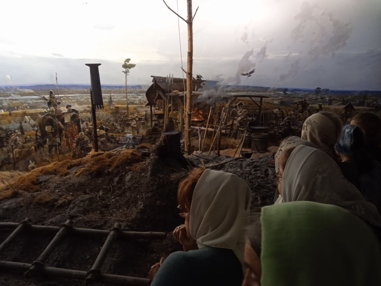 Вначале паломники посетили скит в честь иконы Божией Матери «Живоносный Источник», где помолились за богослужением, после которого желающие смогли окунуться в купели. Затем богомольцы направились в сам монастырь, где воздали благодарение Богу за Его дивного подвижника преподобного отца нашего Тихона Калужского и приложились к его святым мощам. После прогулки по монастырю группа посетила Музей-диораму, посвященную Стоянию на реке Угре (1480 г.) художника Павла Рыженко.