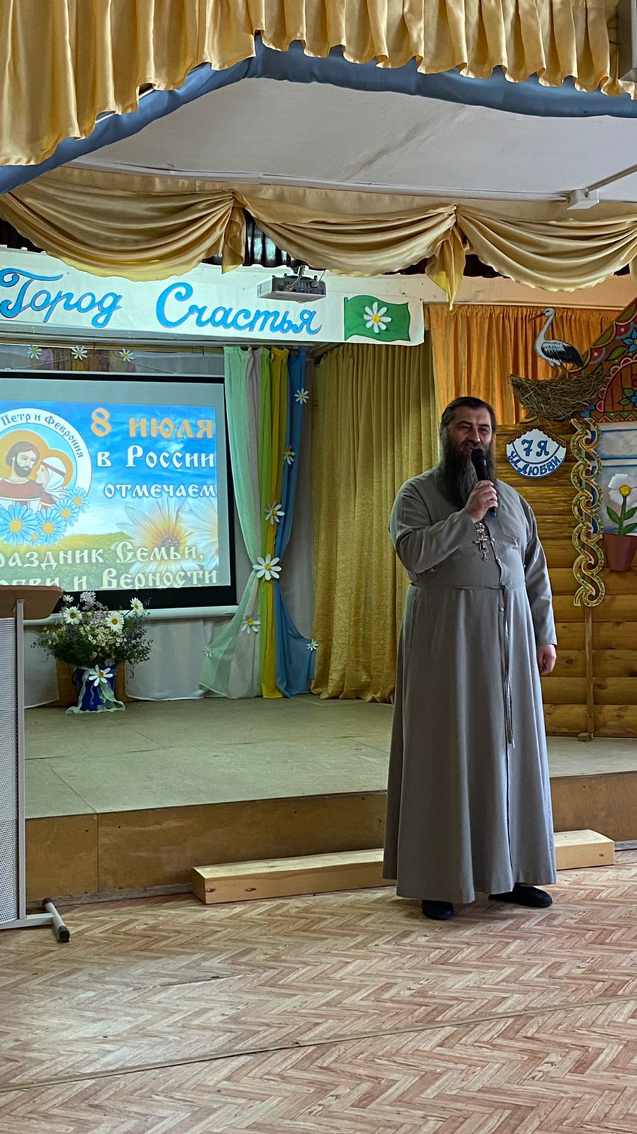 8 июля в Православном детском центре «Возрождение» при помощи руководителя социального отдела Козельской епархии иерея Дионисия Куваева прошел праздник, посвященный дню Семьи, Любви и Верности. В мероприятии приняли участие 12 семей из Козельского района. При входе всем мамам и девочкам дарили символ праздника- ромашку. В теплой атмосфере семьи делились секретами семейного счастья и методами воспитания. Артистами стали сами участники праздника. В завершении семьям были вручены памятные поздравительные открытки и подарки. Вместе с напутствиями их вручал духовник Центра, наместник монастыря Спаса Нерукотворного пустынь игумен Михаил (Семенов). Торжество закончилось чаепитием.