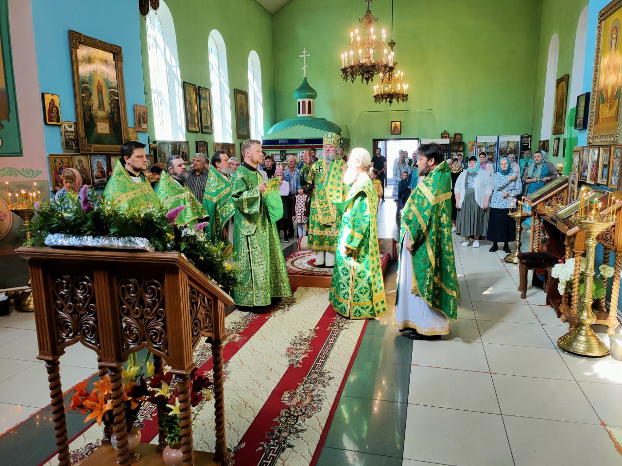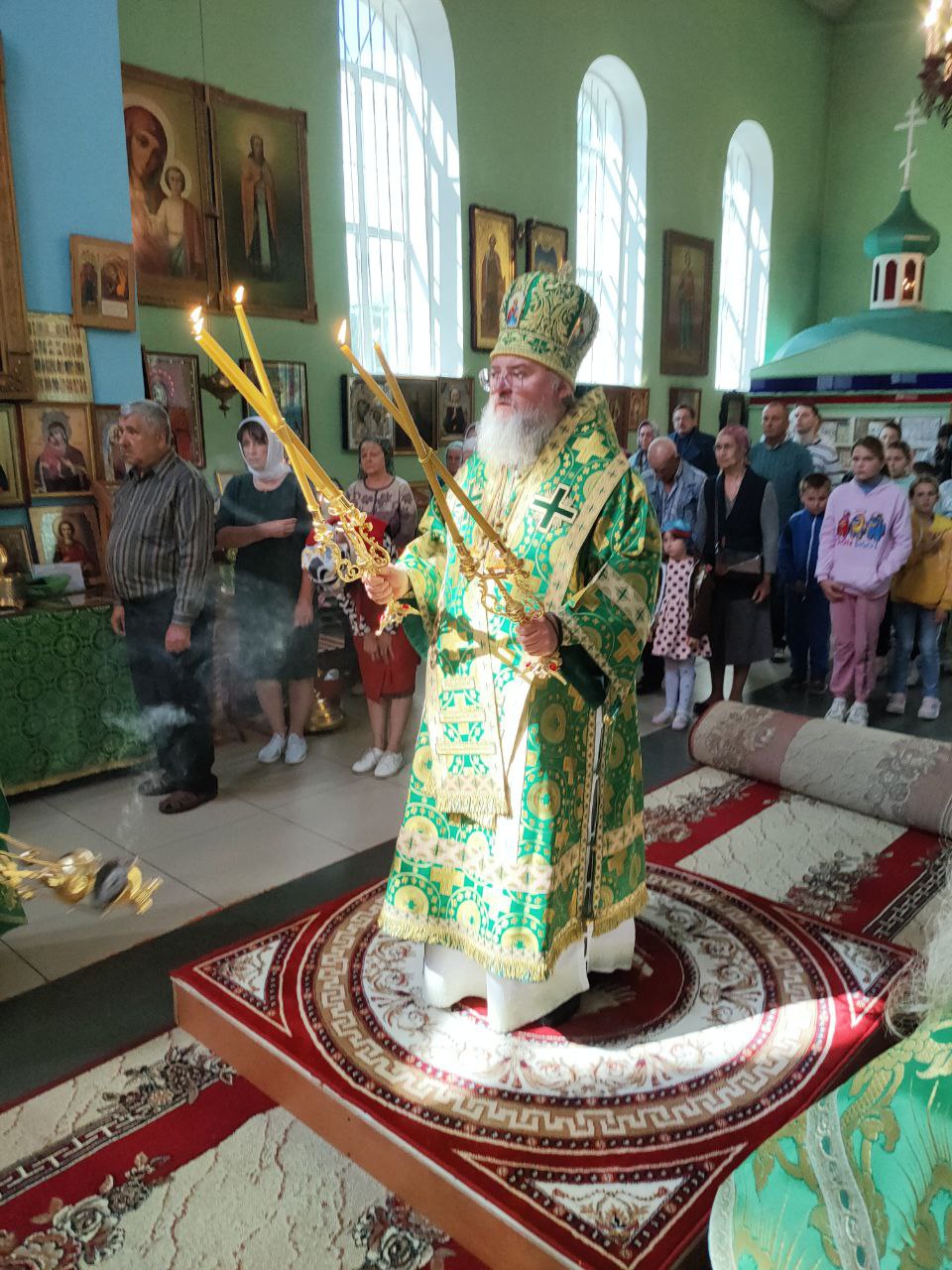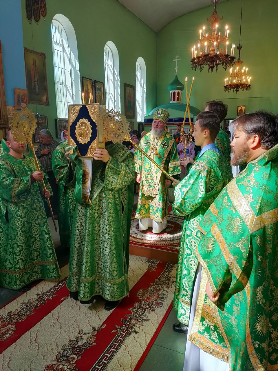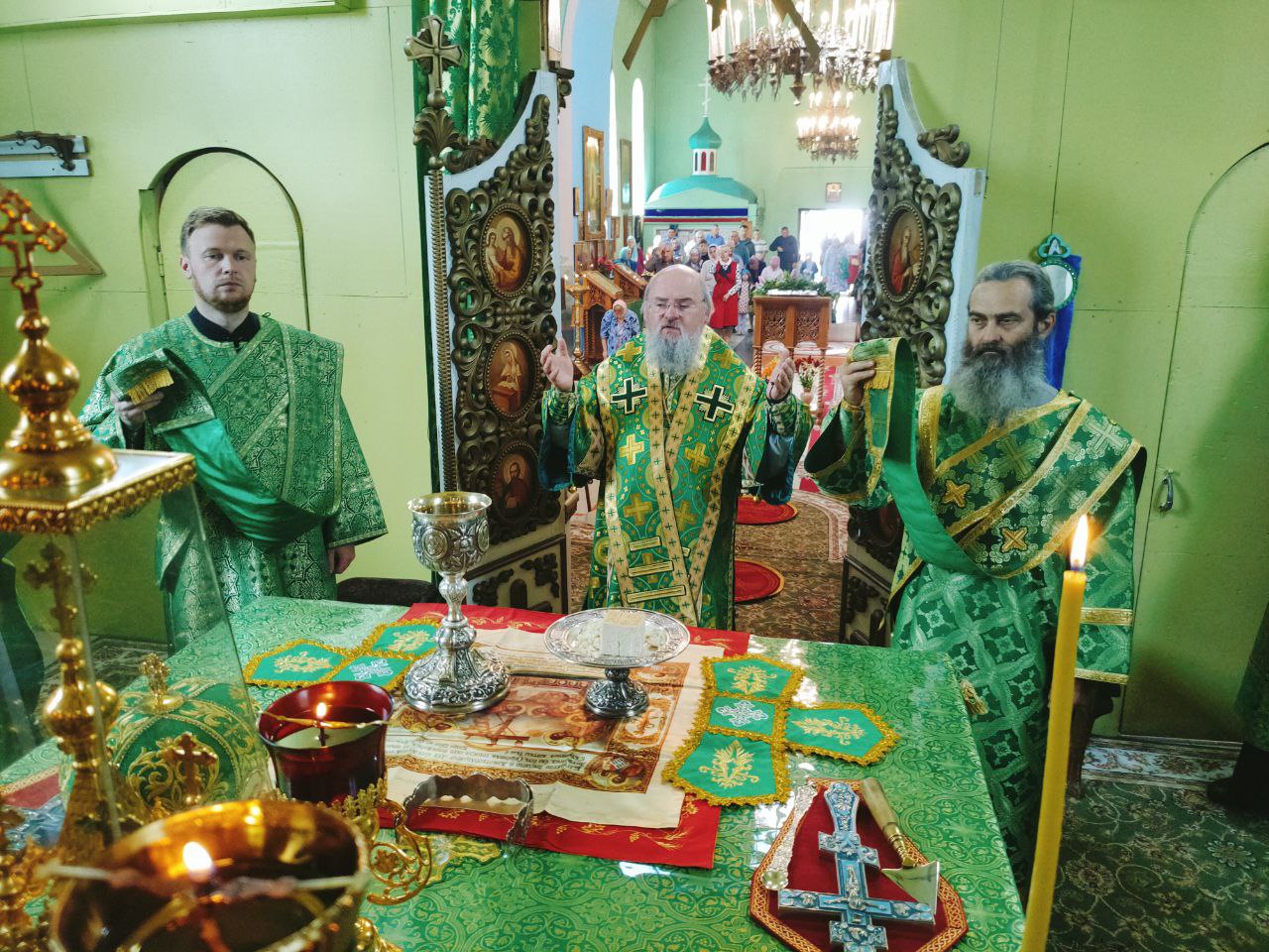 Преосвященному владыке сослужили: настоятель храма протоиерей Василий Биляк, протоиерей Алексий Жиганов – духовник епархии, благочинный округа, протоиерей Михаил Карпенко, протоиерей Антоний Хатунцев, иерей Иоанн Майоров, диакон Евгений Ковригин и диакон Андрей Соколов.