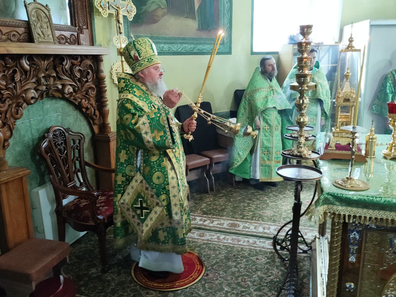 18 июля, в день памяти обретения честных мощей преподобного Сергия Радонежского, епископ Козельский и Людиновский Никита возглавил служение Божественной литургии в храме преподобного Сергия города Людиново.