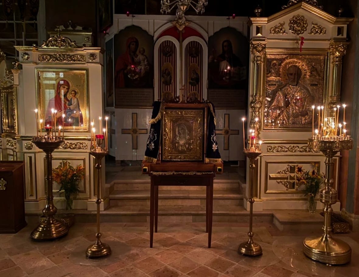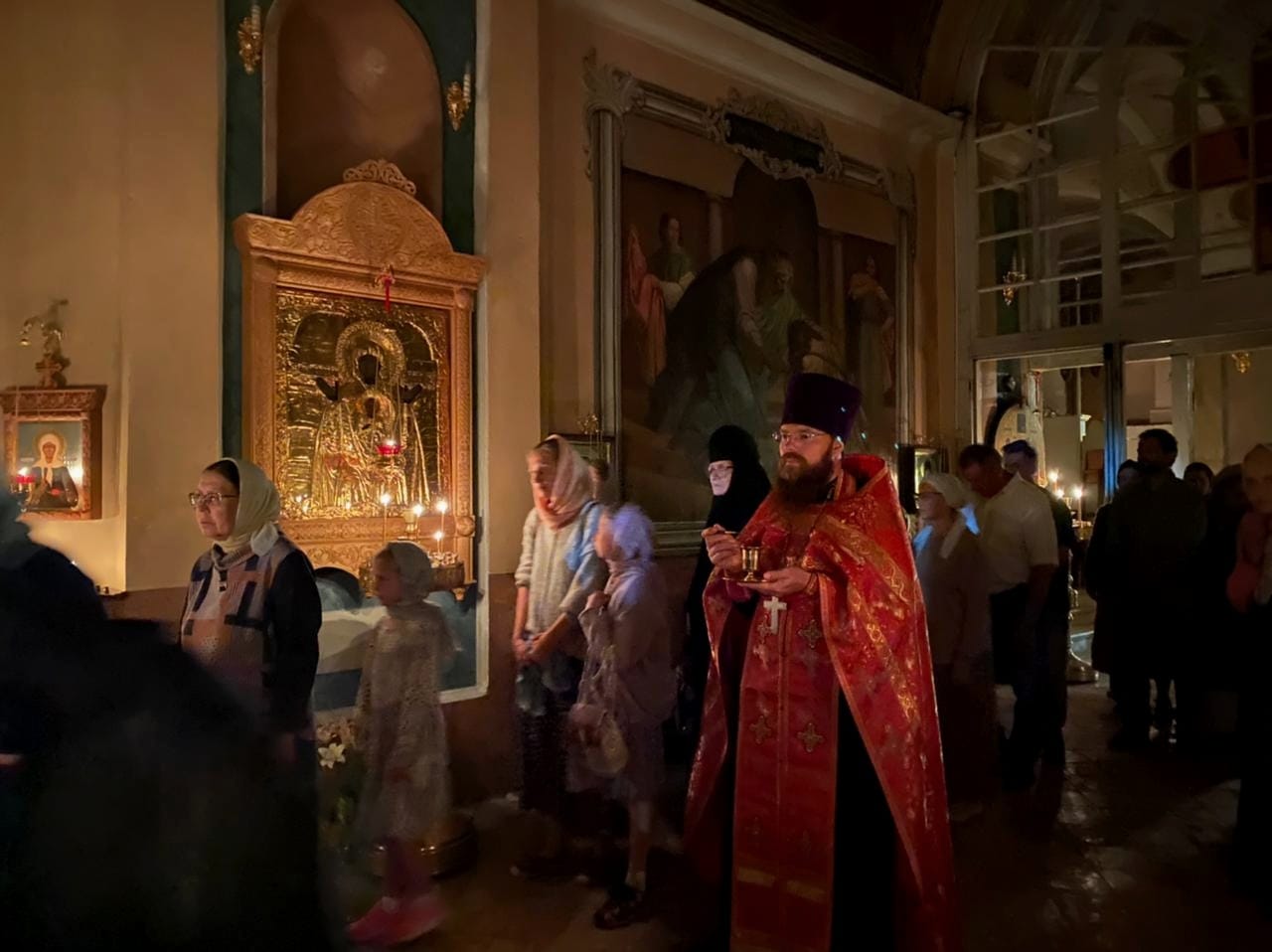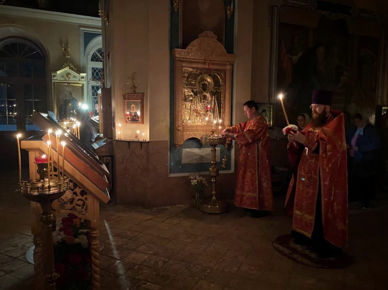 На богослужение благоговейно был принесен мироточивый образ иконы Божией Матери Умиление «Локотская».